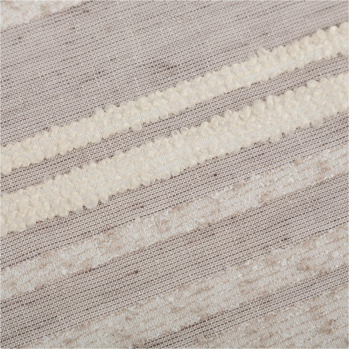 Dieser hochwertige Gardinenstoff aus transparentem Voile verbindet natürliche Struktur in meliertem Taupe mit rustikalen, eingewebten Bouclé-Streifen in Wollweiß. Dadurch entsteht ein dezentes, strukturiertes Streifendessin, das sich harmonisch in viele Einrichtungsstile einfügt – ob modern, skandinavisch oder natürlich.