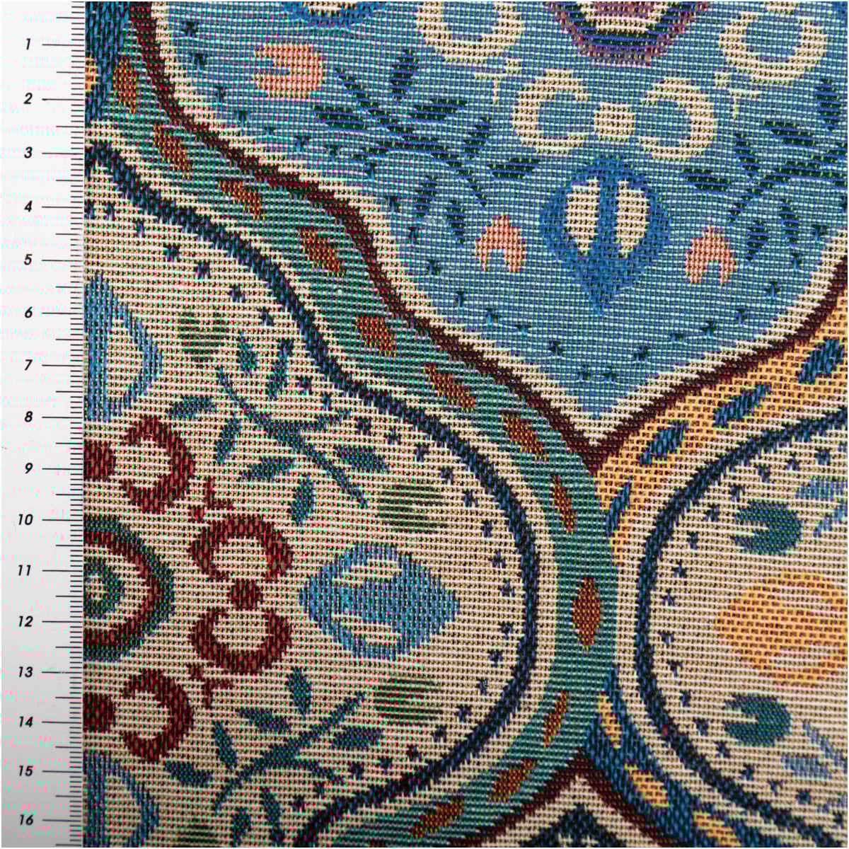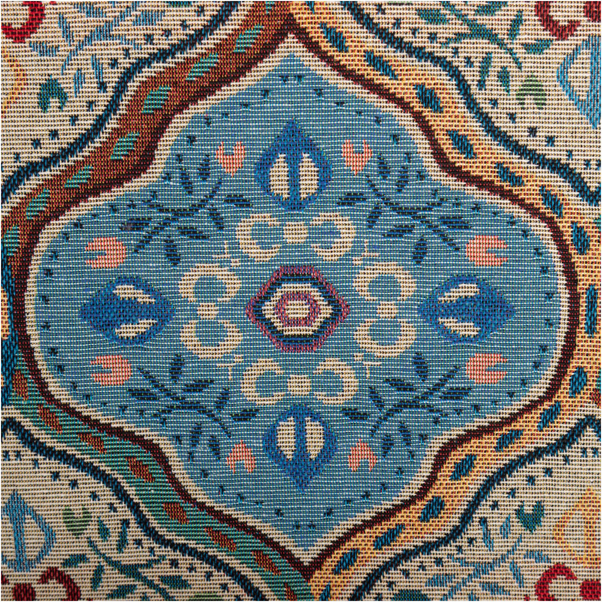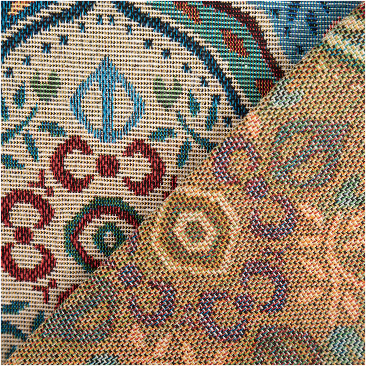 Das Muster ist nicht einfach aufgedruckt, sondern in den Stoff eingewebt. Dadurch entsteht die typische Jacquard- beziehungsweise Gobelin-Struktur, die dem Material seinen hochwertigen Charakter verleiht. So wirkt der Stoff besonders dekorativ und eignet sich ideal für Projekte, bei denen Optik und Stabilität gleichermaßen wichtig sind.