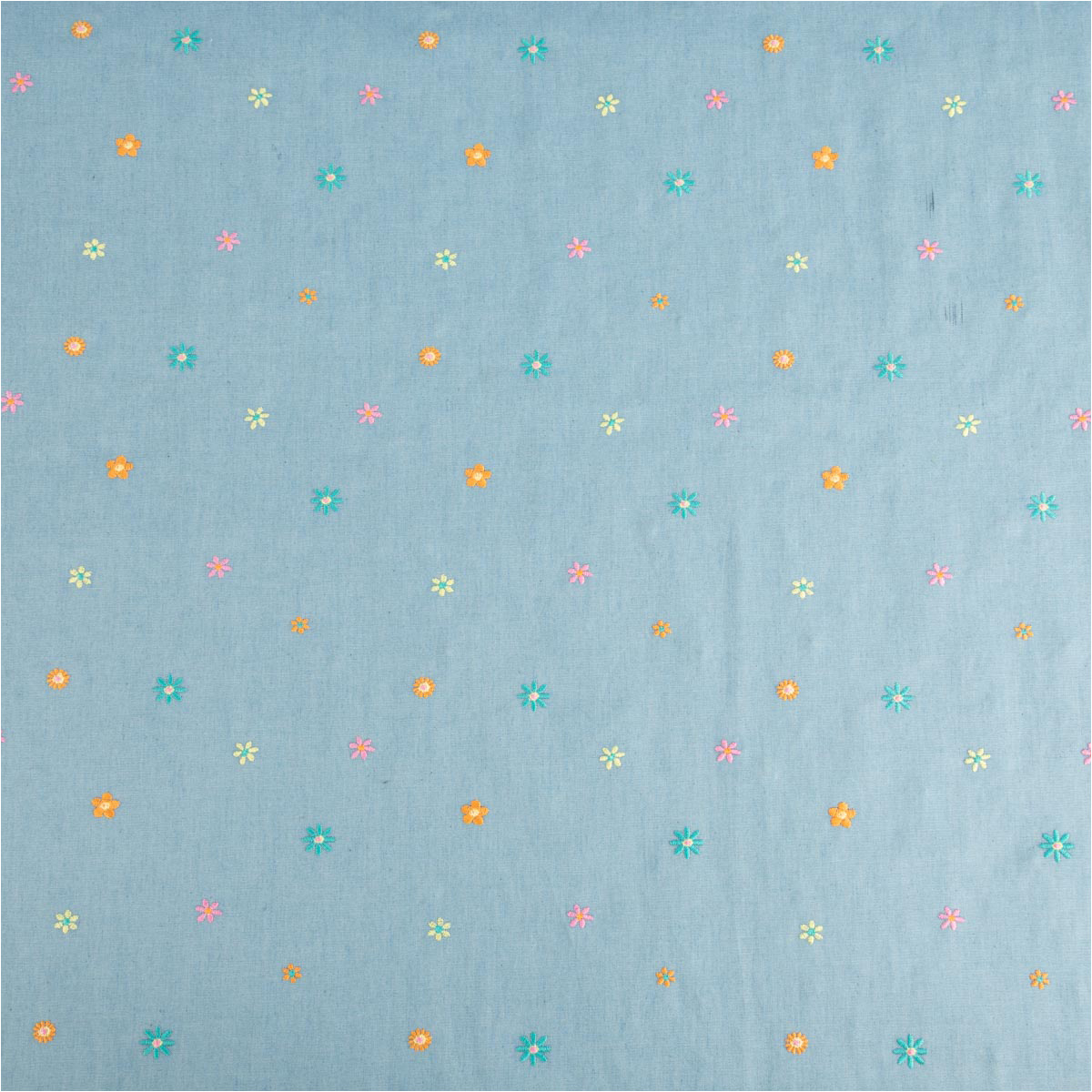 Jeansstoff Chambray garngefärbt bestickt Blüten hellblau bunt 1,30m Breite