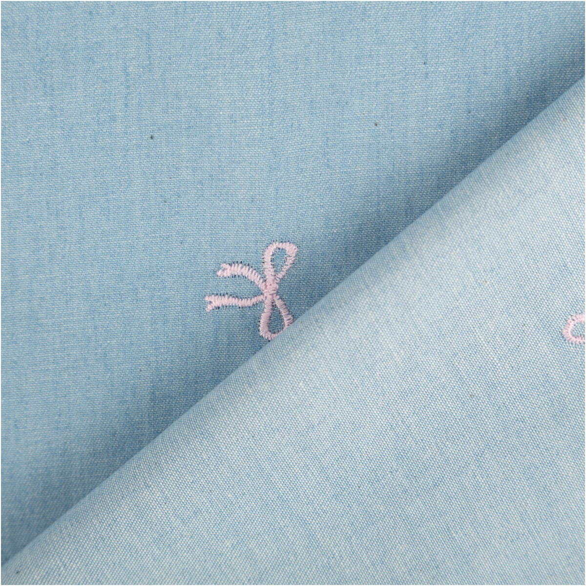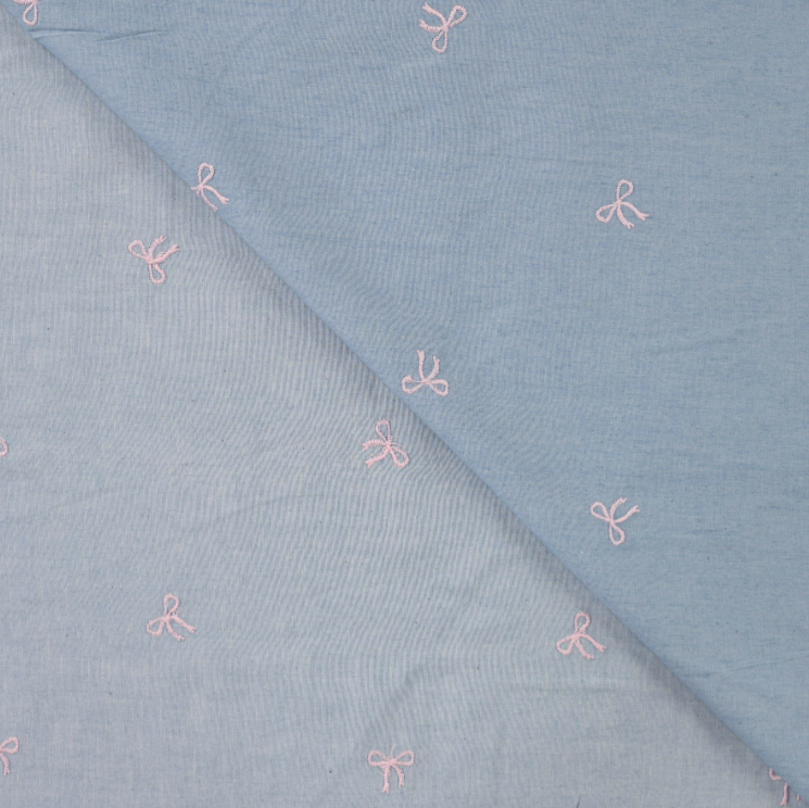 Jeansstoff Chambray garngefärbt bestickt mit Schleifen – hellblau rosa