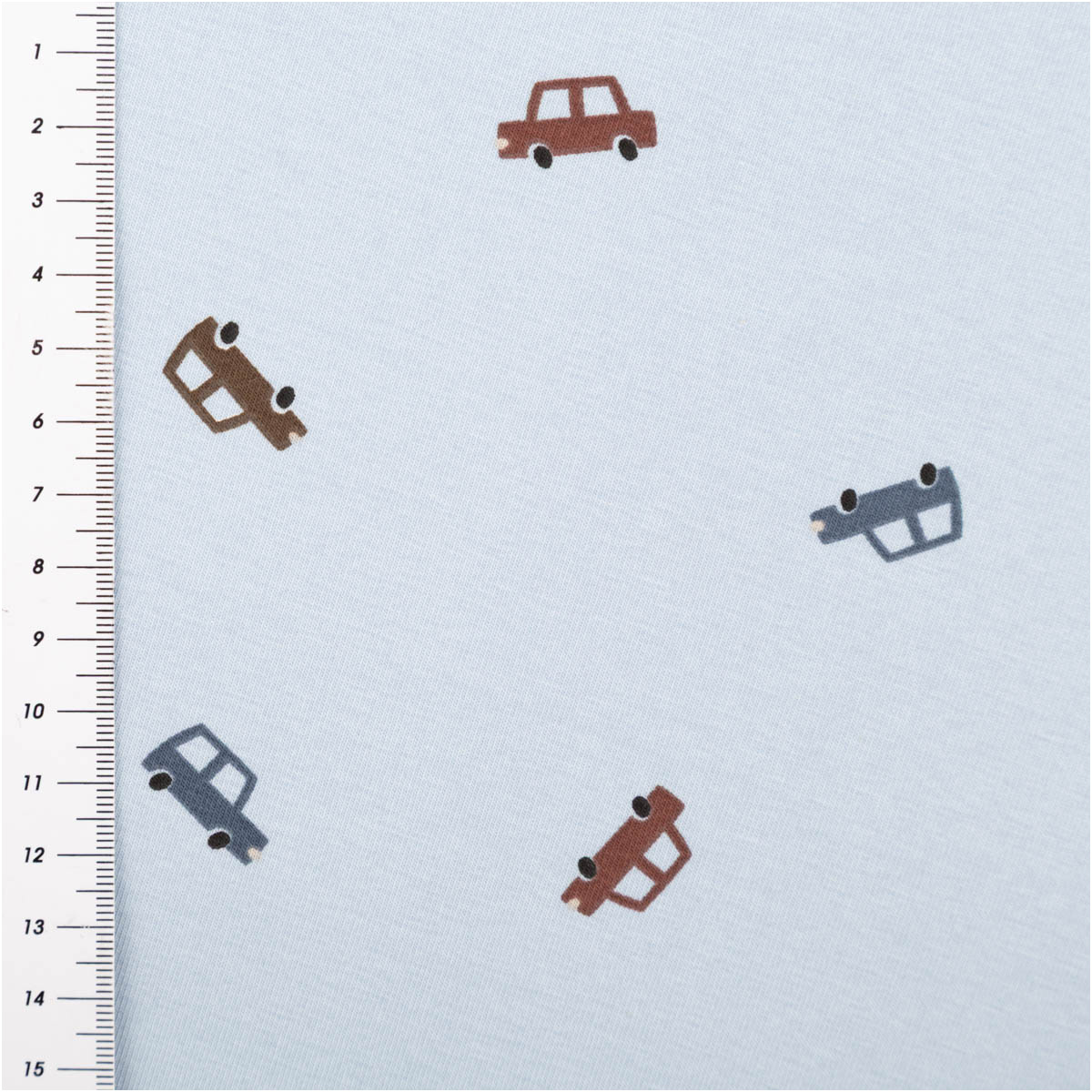 Fahrzeugmotive gehen immer – aber bitte nicht zu wild? Dieser Baumwolljersey in hellblau trifft genau den Sweet Spot: kleine Autos als charmantes Detail, dazu ein ruhiger Look, der sich easy kombinieren lässt. Perfekt für bequeme Baby- und Kinderkleidung, die im Alltag mitmacht und dabei richtig gut aussieht.