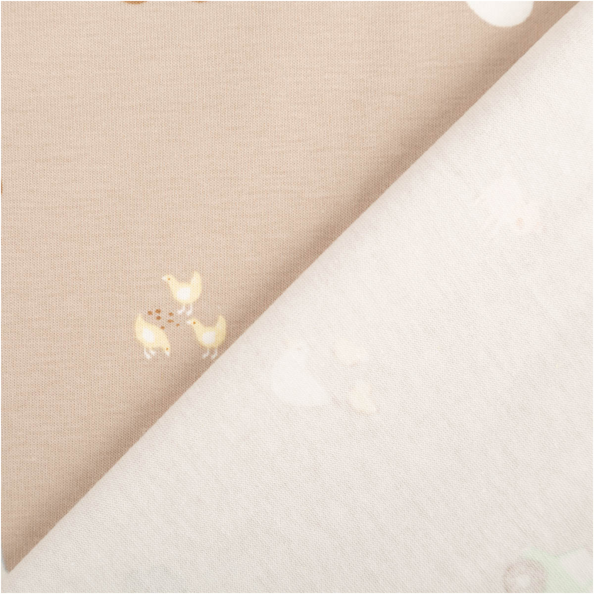 Baumwolljersey Bauernhof Traktor Tiere sand: sanfter Look, große Nähfreiheit