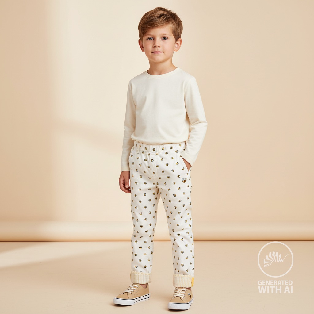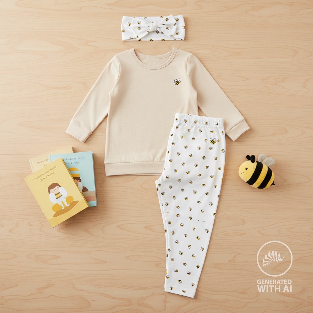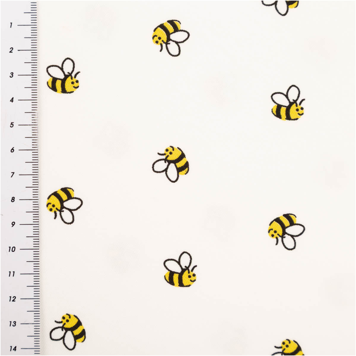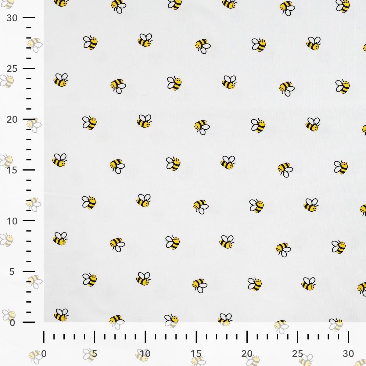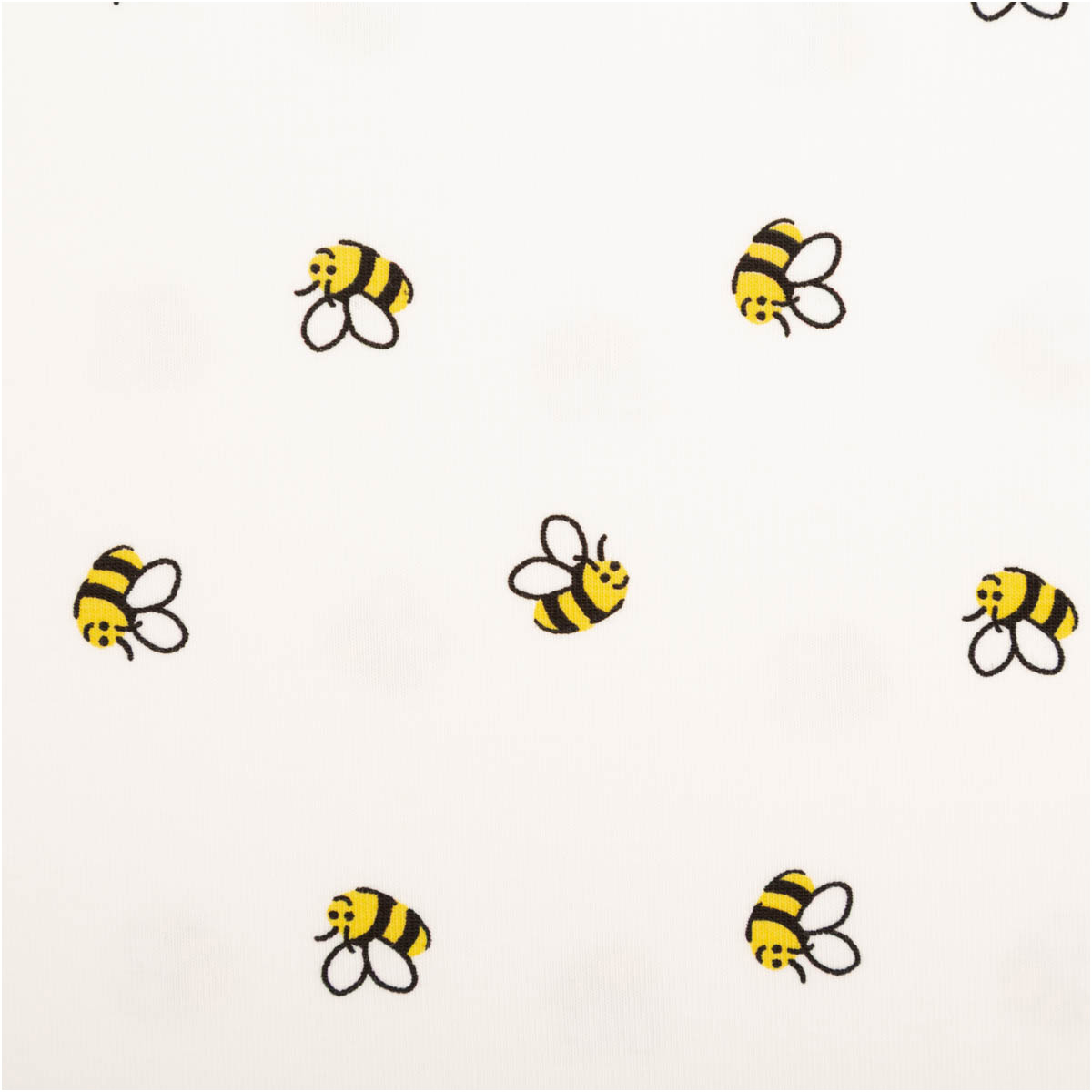 Süßes Bienenmuster: kleine gelb-schwarze Bienen auf weißem Grund – dezent, modern und leicht zu kombinieren.