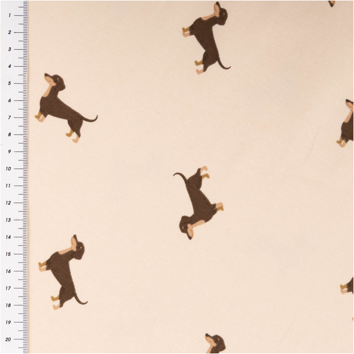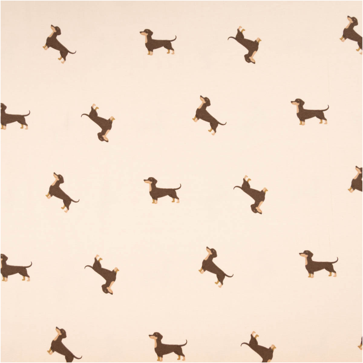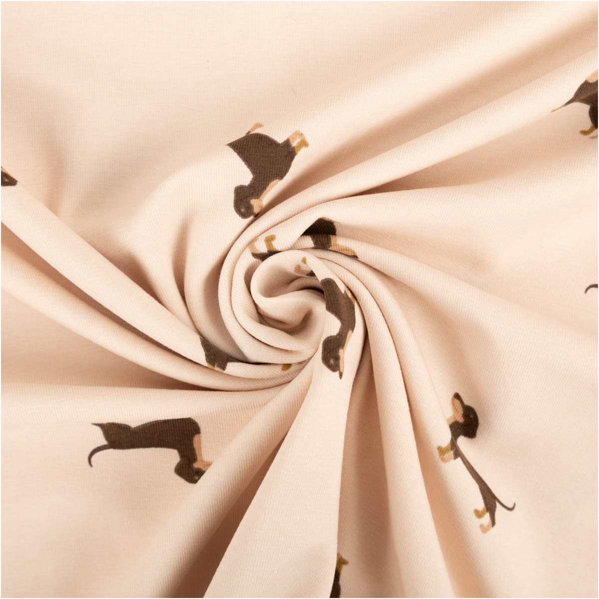 Jersey Stoff Baumwolljersey Dackel sand 1,45m Breite