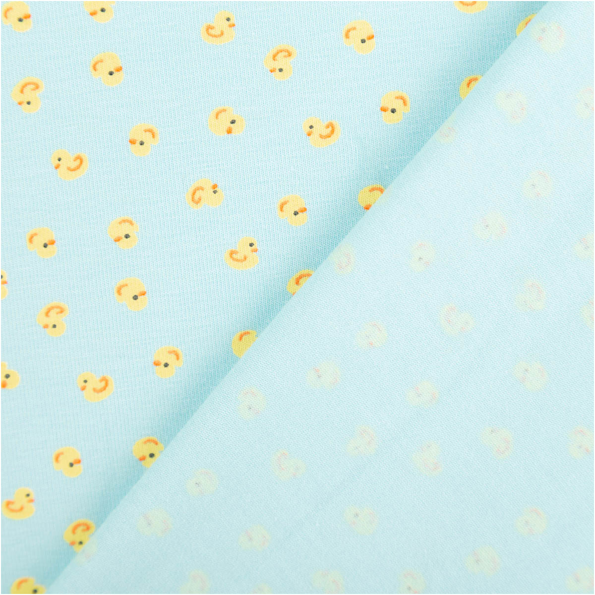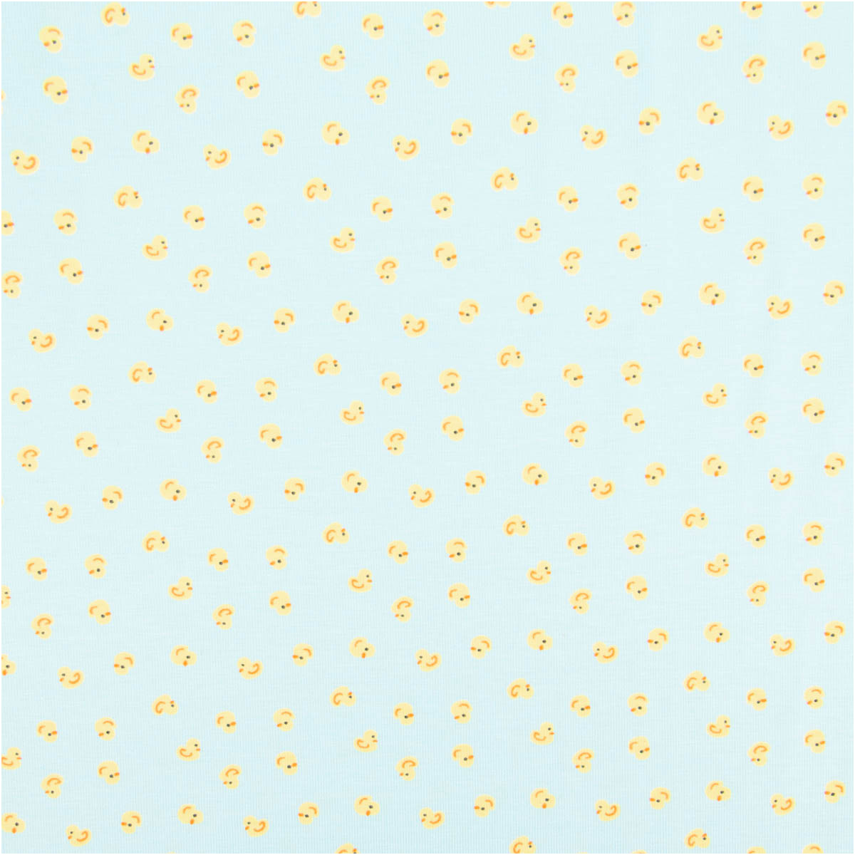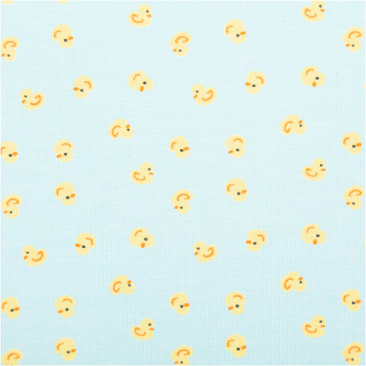 Die Entchen sind klein gehalten und regelmäßig verteilt. Dadurch wirkt der Stoff trotz der fröhlichen Farben ruhig und eignet sich hervorragend für Oberteile, Hosen oder ganze Sets.