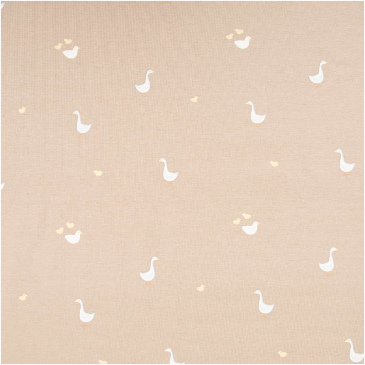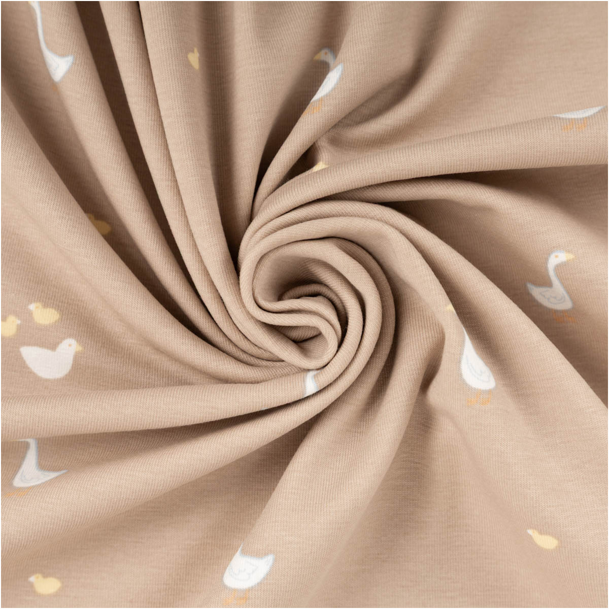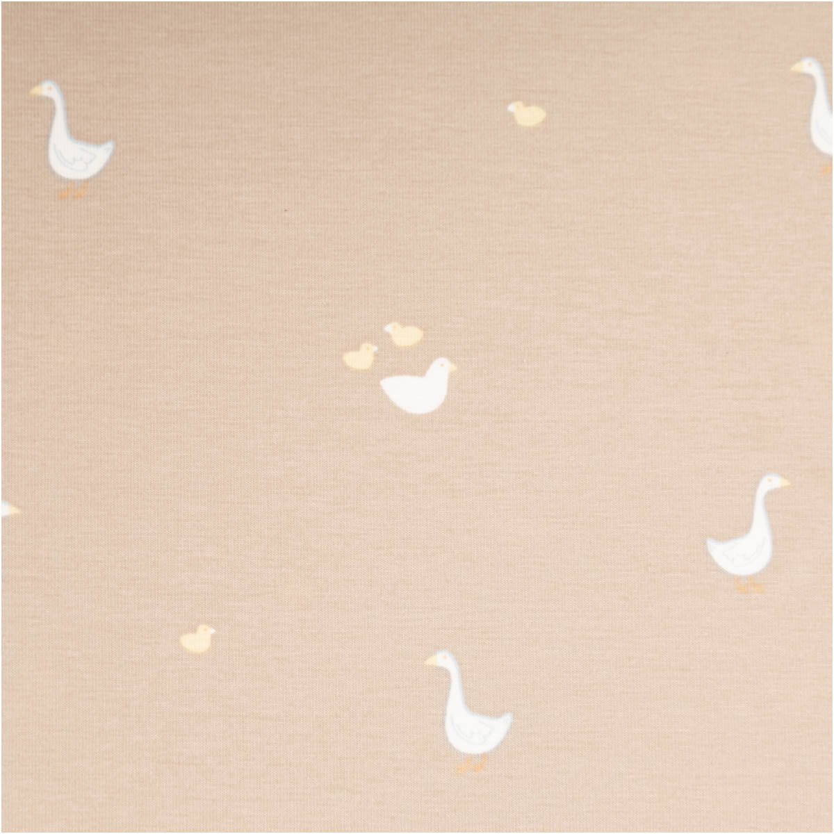 Zartes Gänse-Design: ruhiges Motiv in sand/weiß mit Gänsen und Küken, passt zu vielen Uni-Stoffen und Bündchen