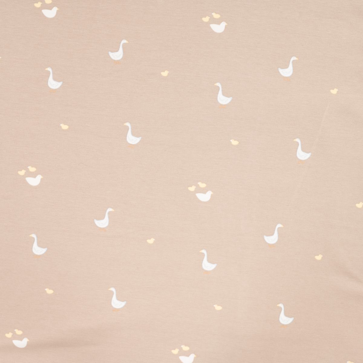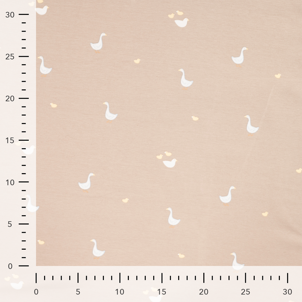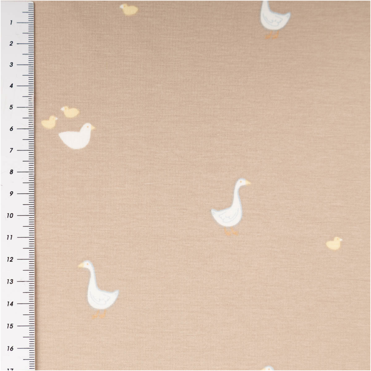 Zartes Gänse-Design: ruhiges Motiv in sand/weiß mit Gänsen und Küken, passt zu vielen Uni-Stoffen und Bündchen