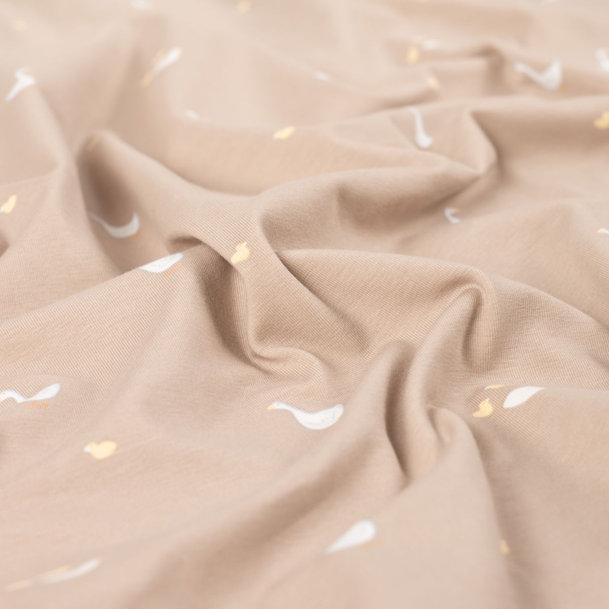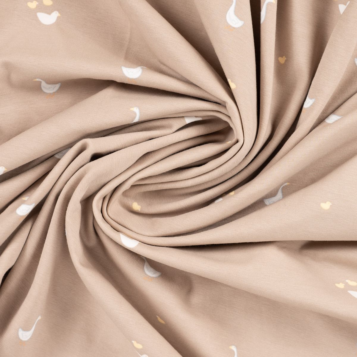 Baumwolljersey Gänse sand/weiß: sanfter Look für Baby- und Kinderkleidung