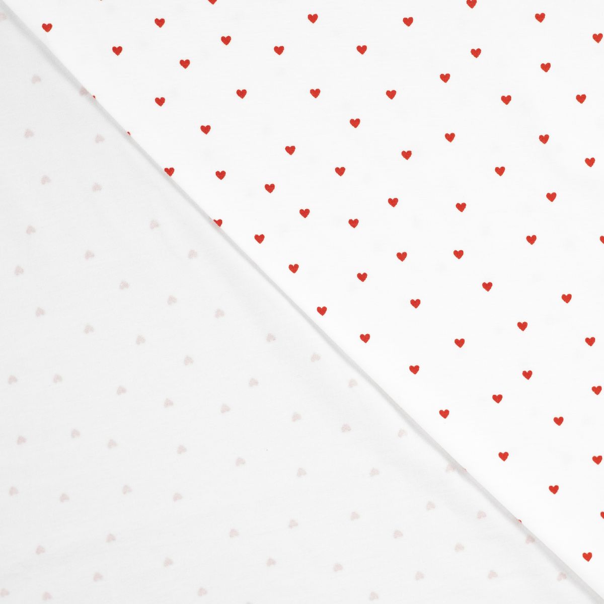Das Herzmuster wirkt verspielt, aber nicht überladen. So kannst du den Stoff sehr gut mit Uni-Stoffen in Weiß, Rot, Creme, Rosé oder Beige kombinieren. Besonders schön passt er zu schlichten Schnitten, bei denen das feine Muster gut zur Geltung kommt.