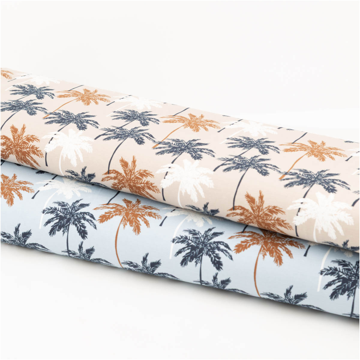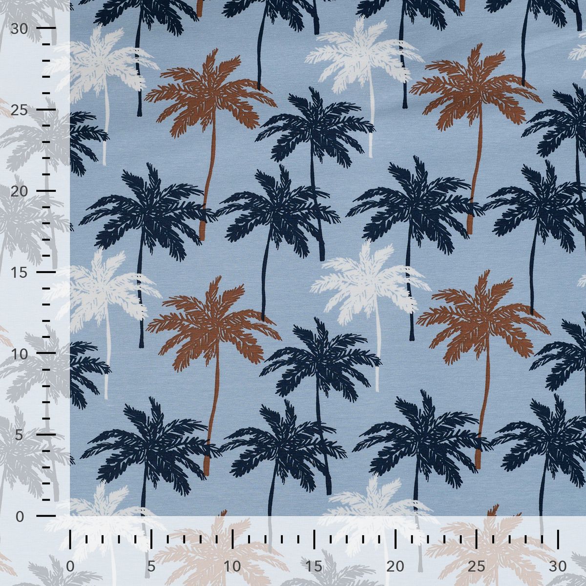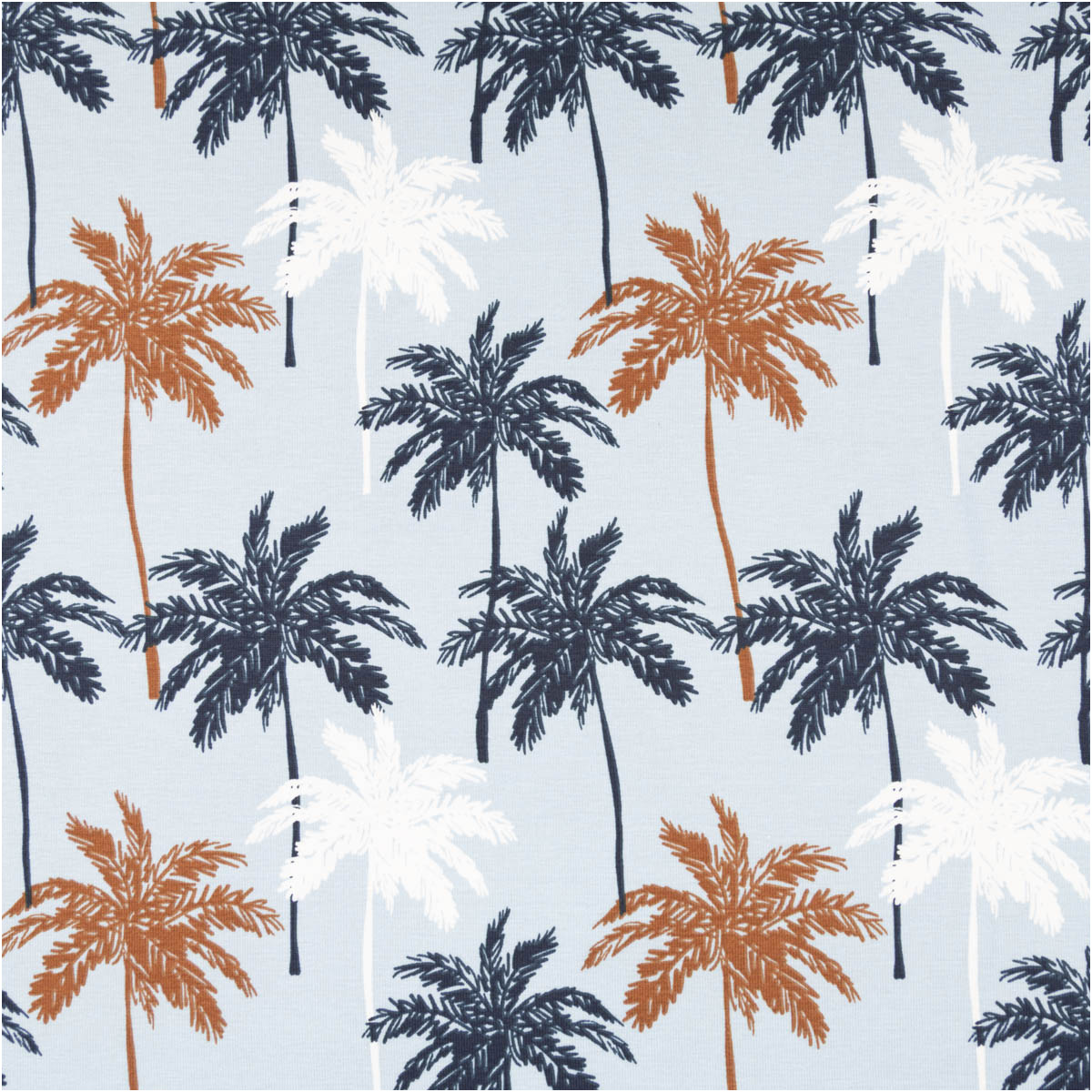Baumwolljersey Palmen blau – Jersey Meterware in 1,45 m Breite