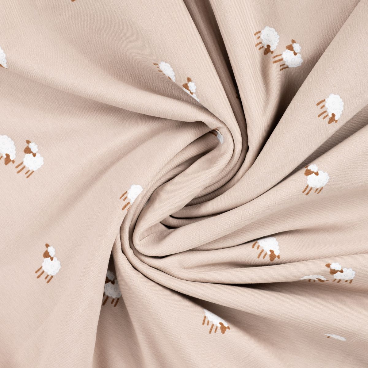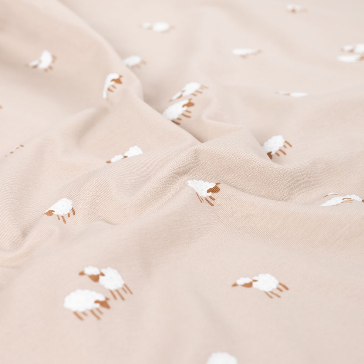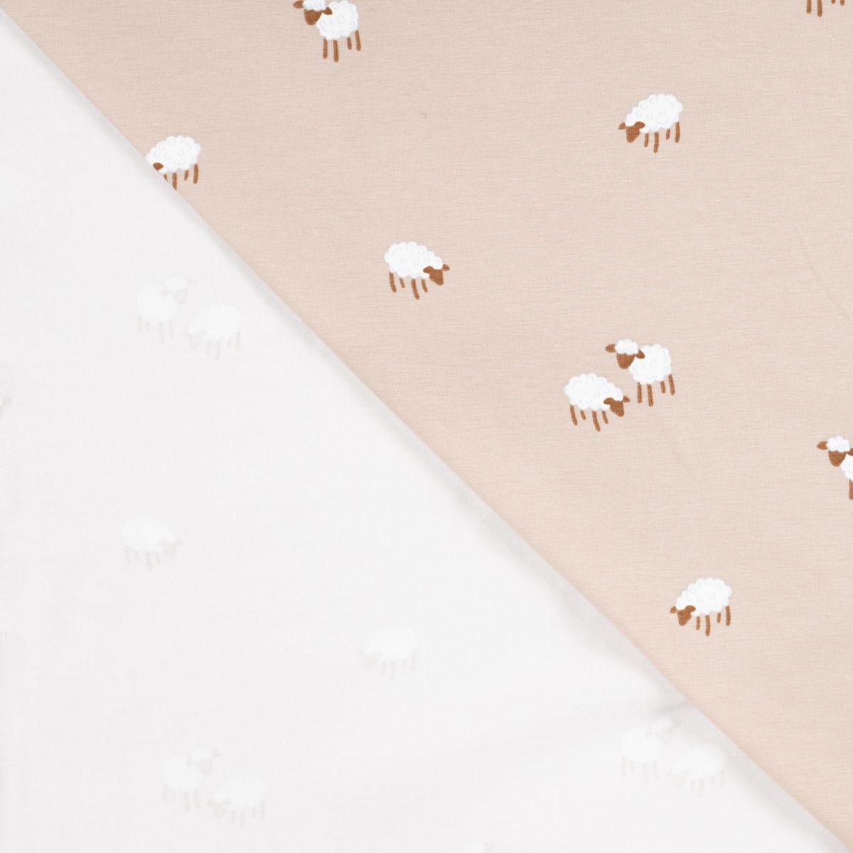 Baumwolljersey Schäfchen sand weiß für liebevolle Nähideen