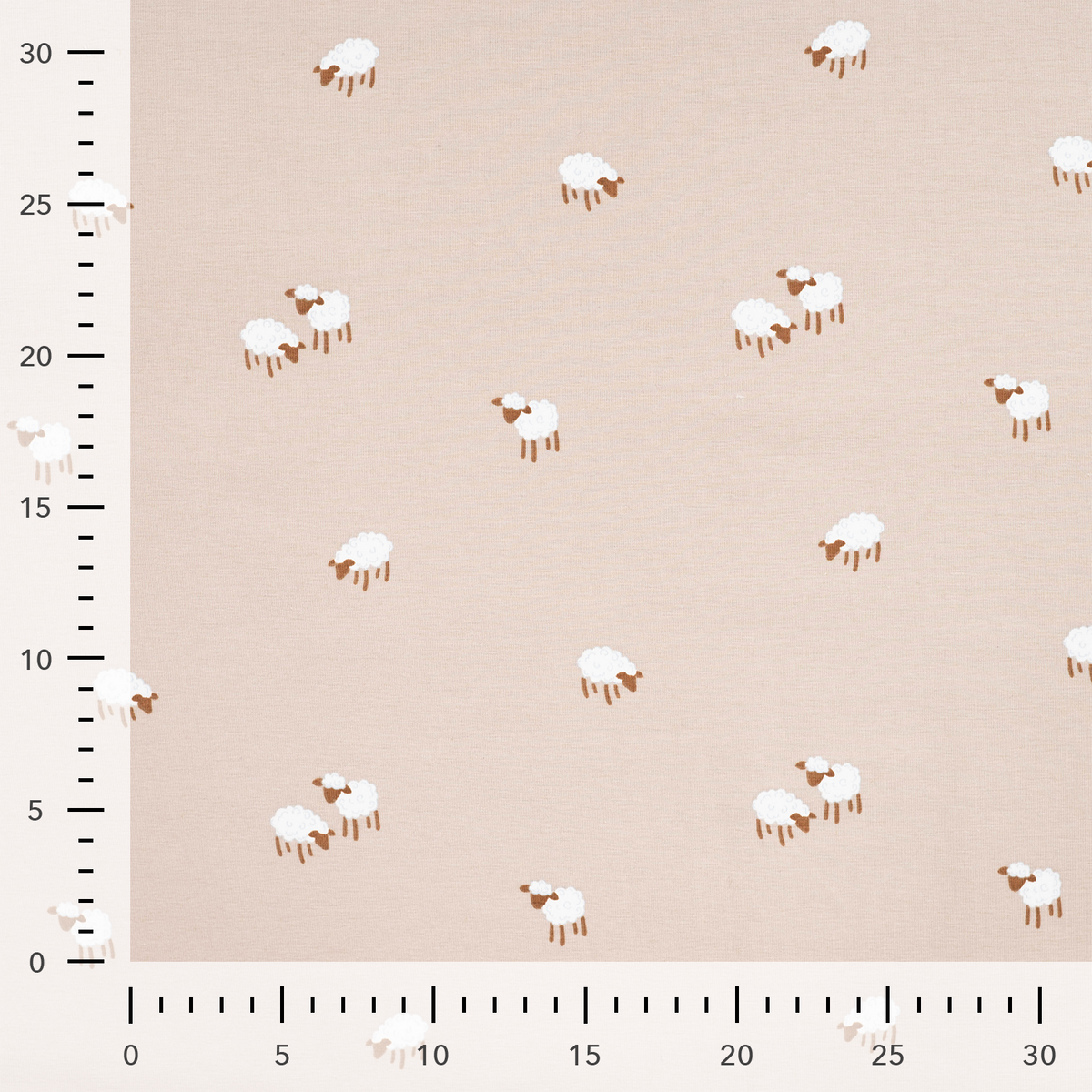 Der Jersey Stoff Baumwolljersey Schäfchen sand weiß verbindet angenehmen Tragekomfort mit einem liebevollen, ruhigen Design. Die kleinen weißen Schäfchen auf sandfarbenem Grund wirken sanft, freundlich und zeitlos. Gleichzeitig ist der Stoff elastisch, vielseitig und ideal für viele Nähideen rund um Babykleidung, Kinderkleidung und bequeme Basics. Wenn du einen Jersey Stoff suchst, der niedlich, harmonisch und alltagstauglich ist, ist dieses Design eine wunderbare Wahl.