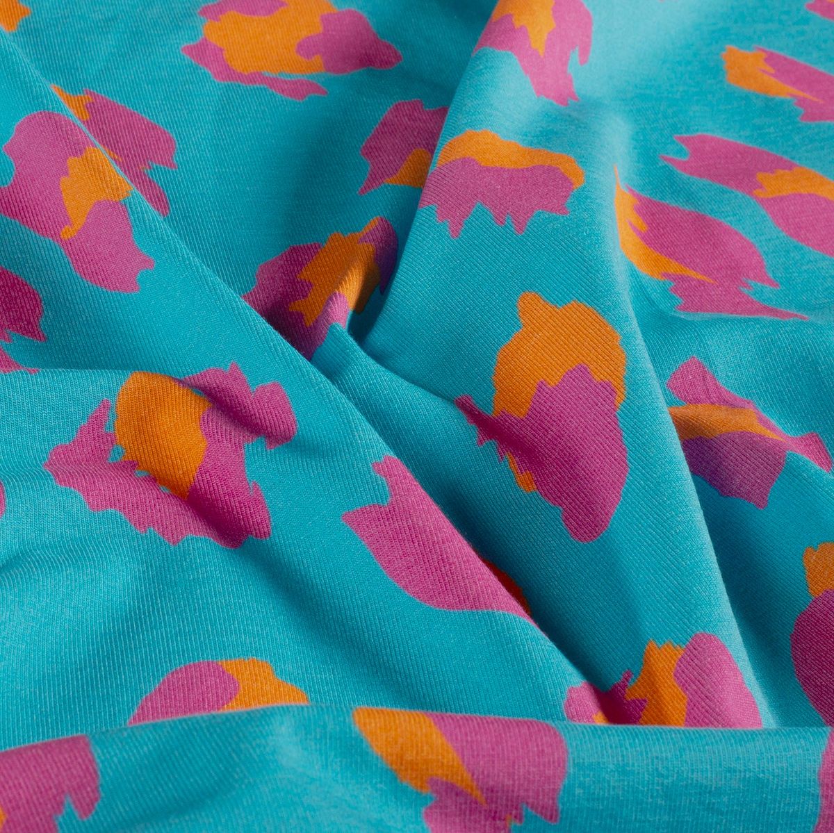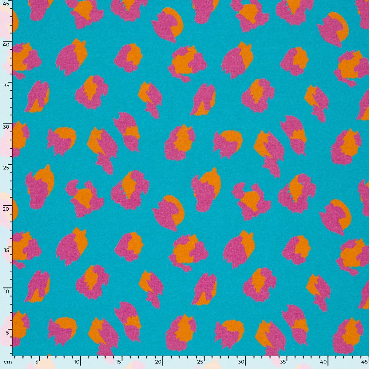 Fräulein von Julie Jersey Stoff Baumwolljersey Leo Digitaldruck türkis pink orange 1,50m Breite