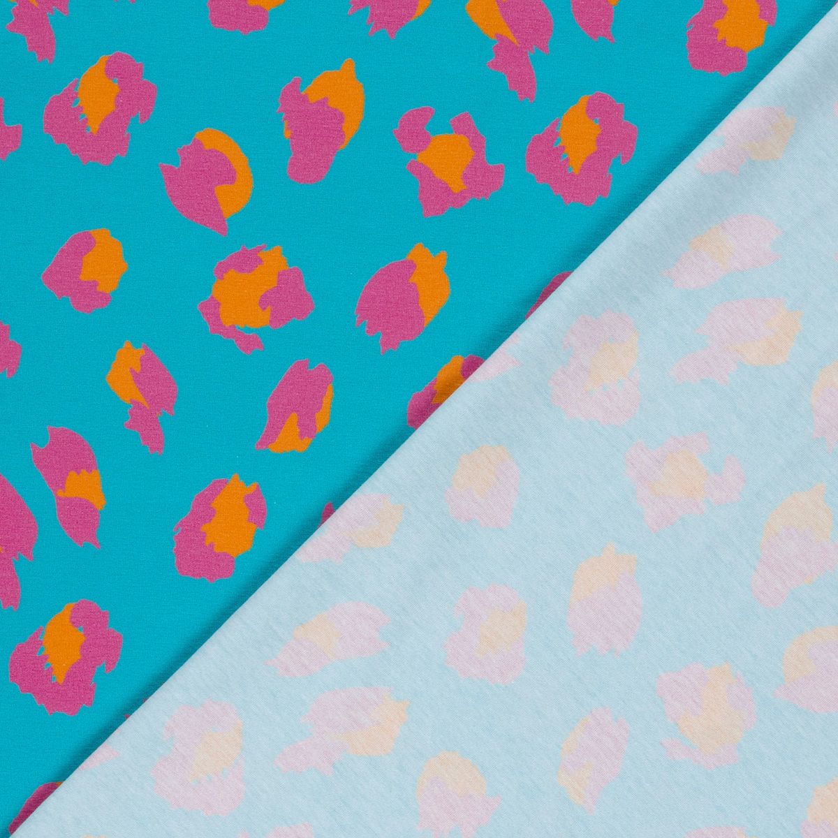 Dieser Baumwolljersey aus der Kollektion Fräulein von Julie ist genau richtig, wenn du kräftige Farben und ausdrucksstarke Muster liebst. Der moderne Leo-Digitaldruck in leuchtendem Pink und Orange auf türkisfarbigem Hintergrund wirkt lebendig, modisch und selbstbewusst. Damit wird der Stoff zum Hingucker für viele kreative Nähideen und setzt in deinen Projekten ein klares Statement.
