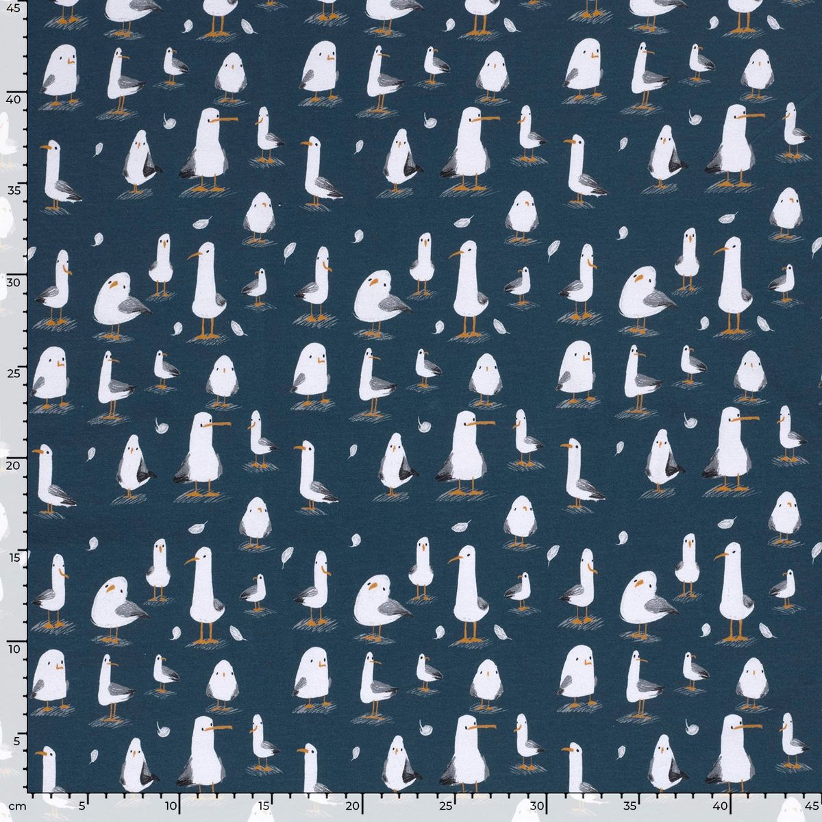 Baumwolljersey mit Möwen auf dunkelblauem Hintergrund