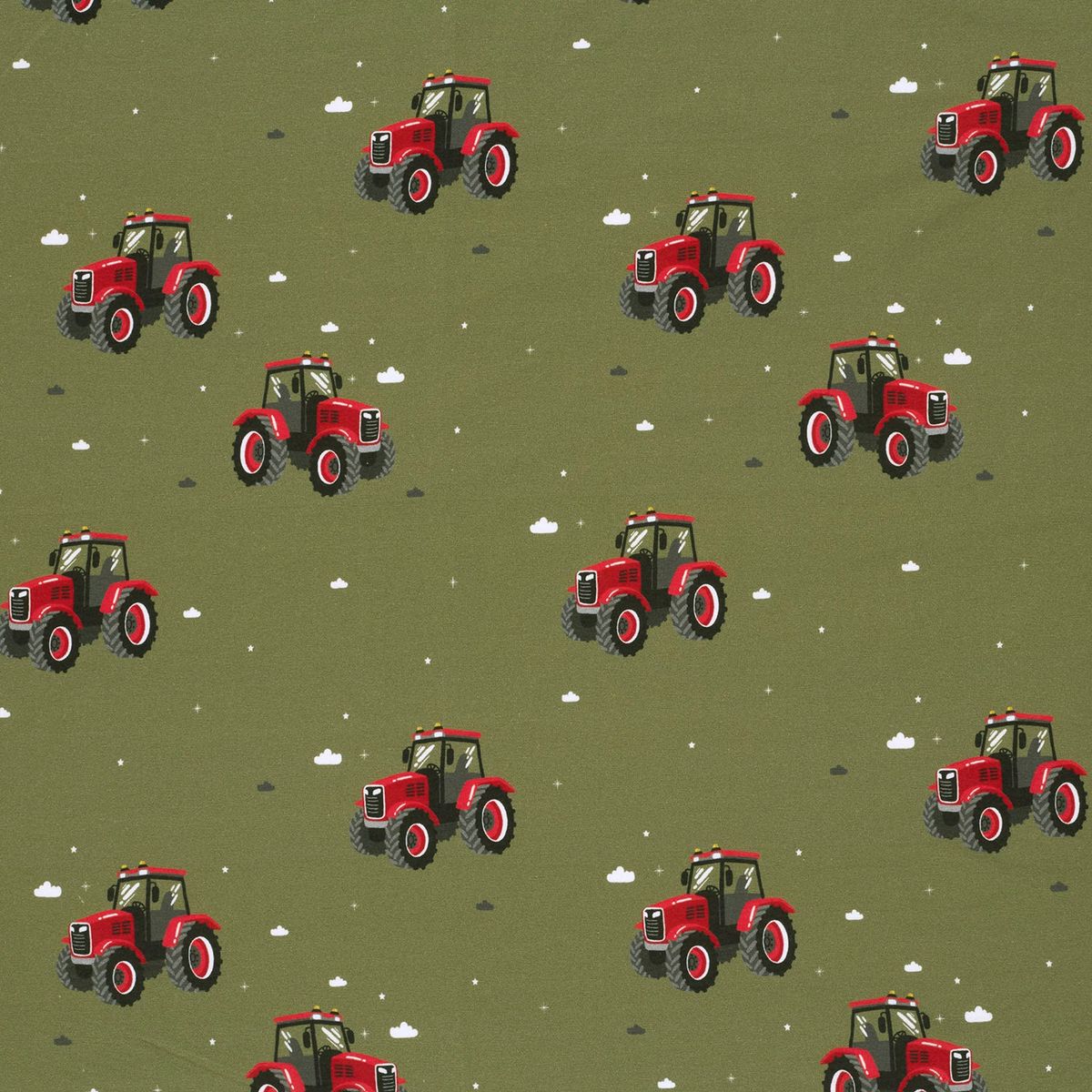 Der Stoff ist ca. 1,50 m breit und lässt sich vielseitig vernähen. Durch den hochwertigen Digitaldruck erscheinen die Traktoren detailreich und farbintensiv. Das verleiht deinen Nähprojekten eine ausdrucksstarke Optik, ohne dass das Design zu unruhig wirkt.