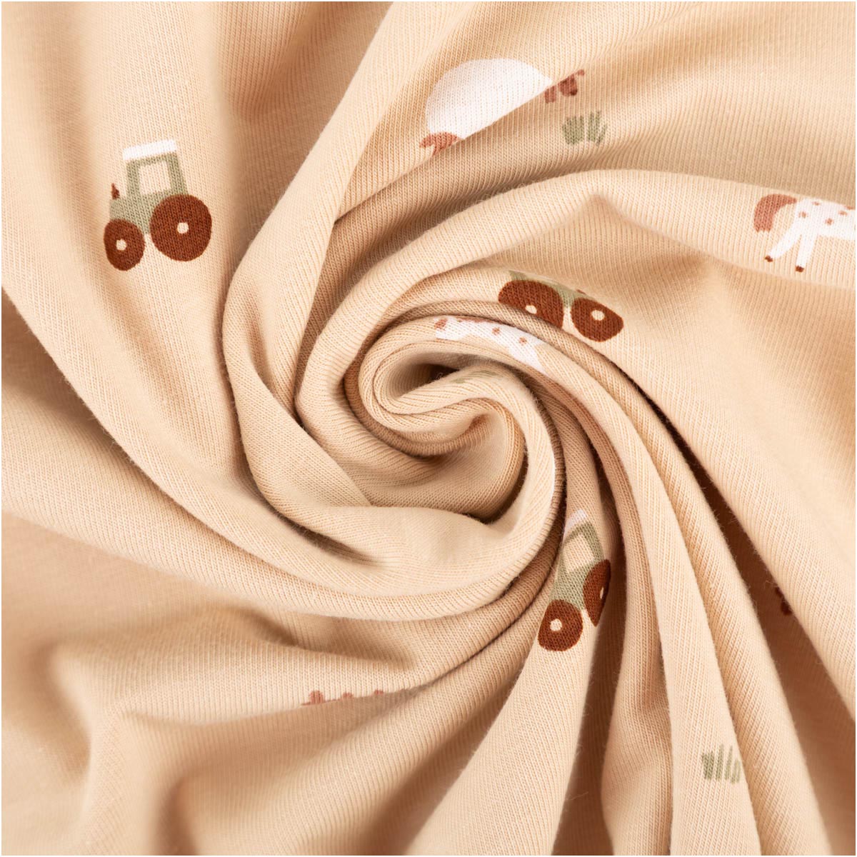 Jersey Stoff Baumwolljersey mit niedlichem Bauernhof-Print – Weich, elastisch & hautfreundlich in Beige (/1,50 m Breite)