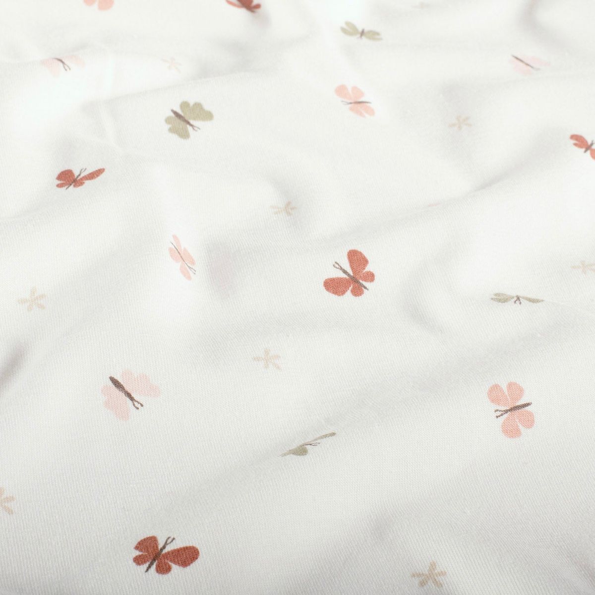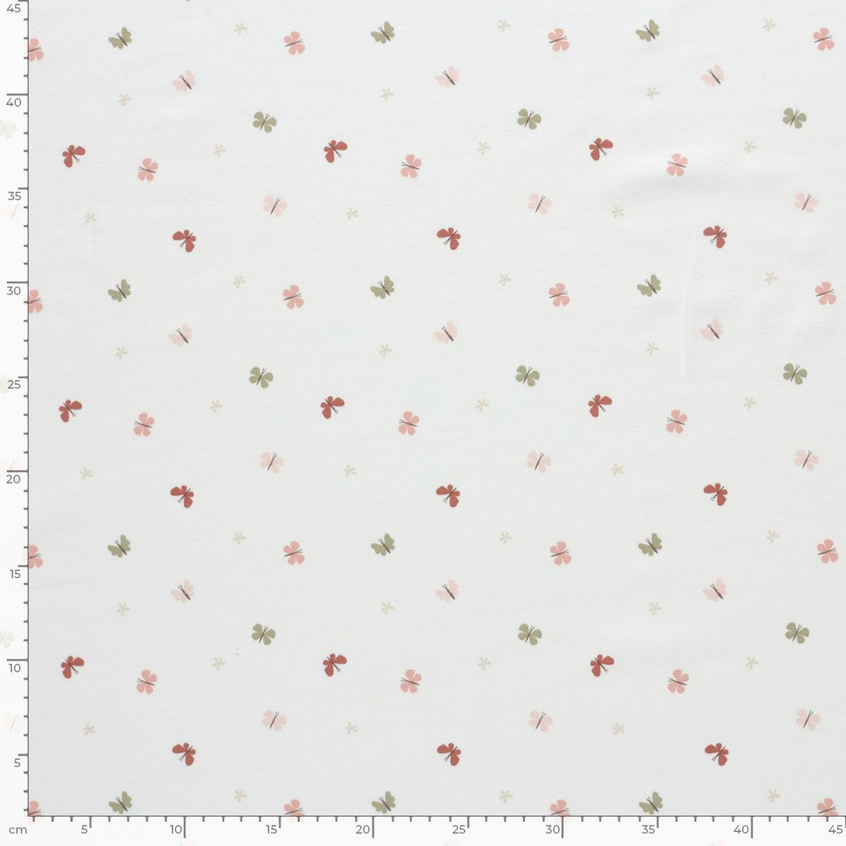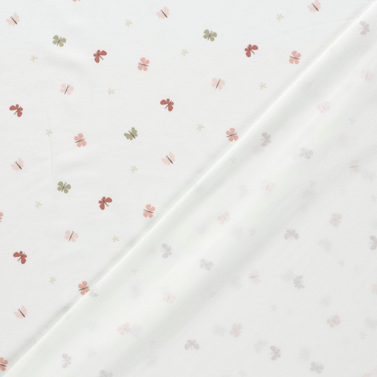 Jersey Stoff Baumwolljersey Schmetterlinge wollweiß rosa rot beige 1,50m Breite