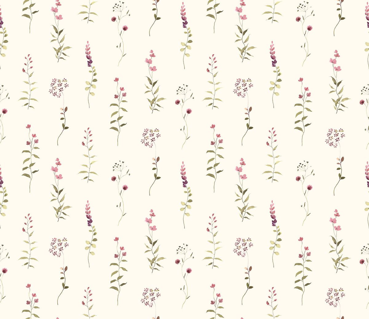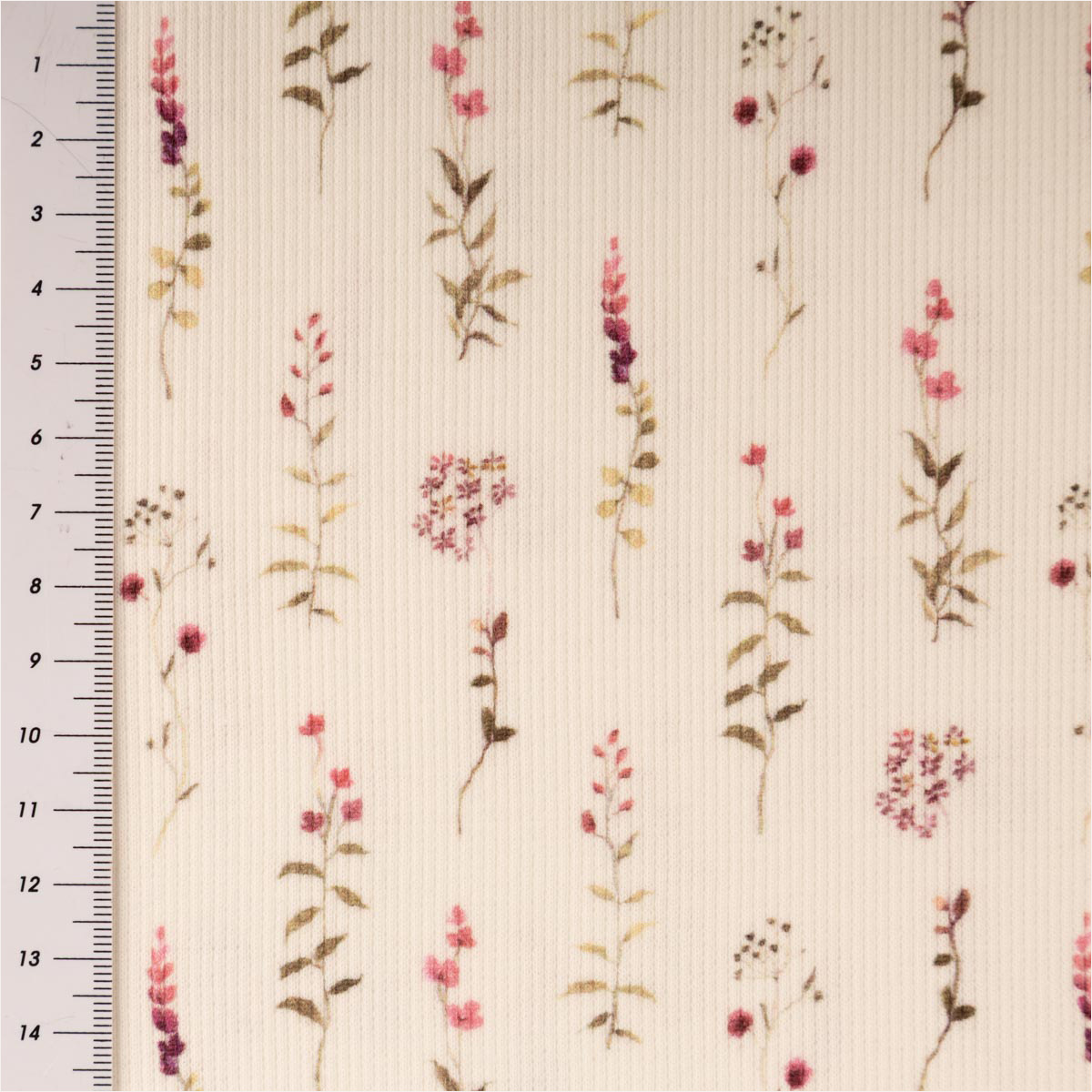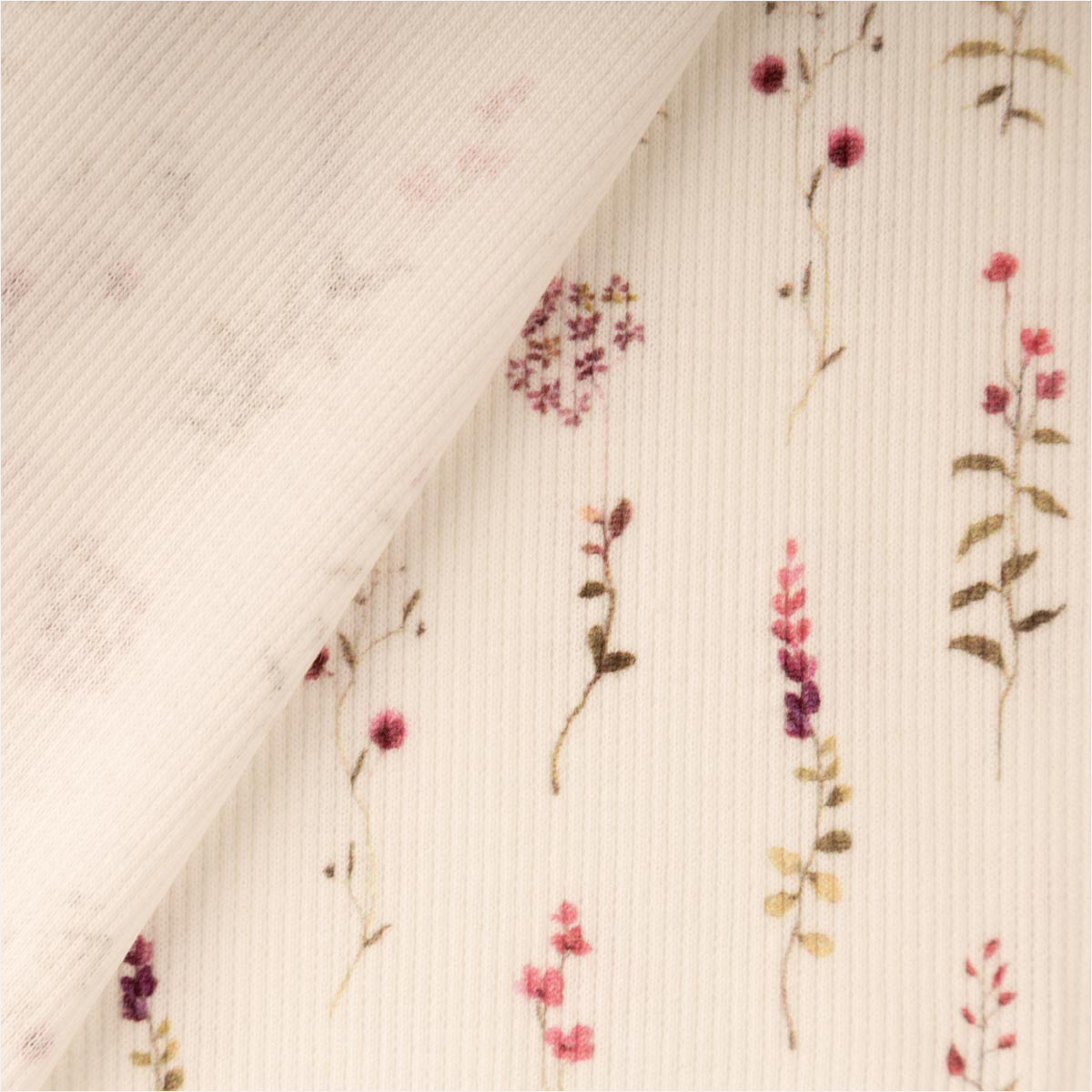 Weicher Rippjersey mit zartem Blümchenmuster in Rosa und Grün auf wollweißem Grund