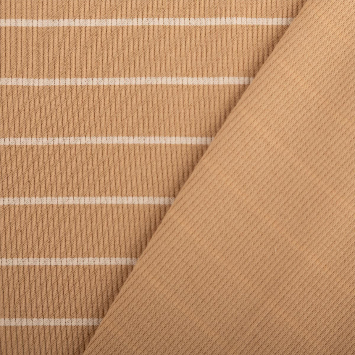 Weicher Rippjersey mit feiner Rippenstruktur in Beige-Weiß gestreift