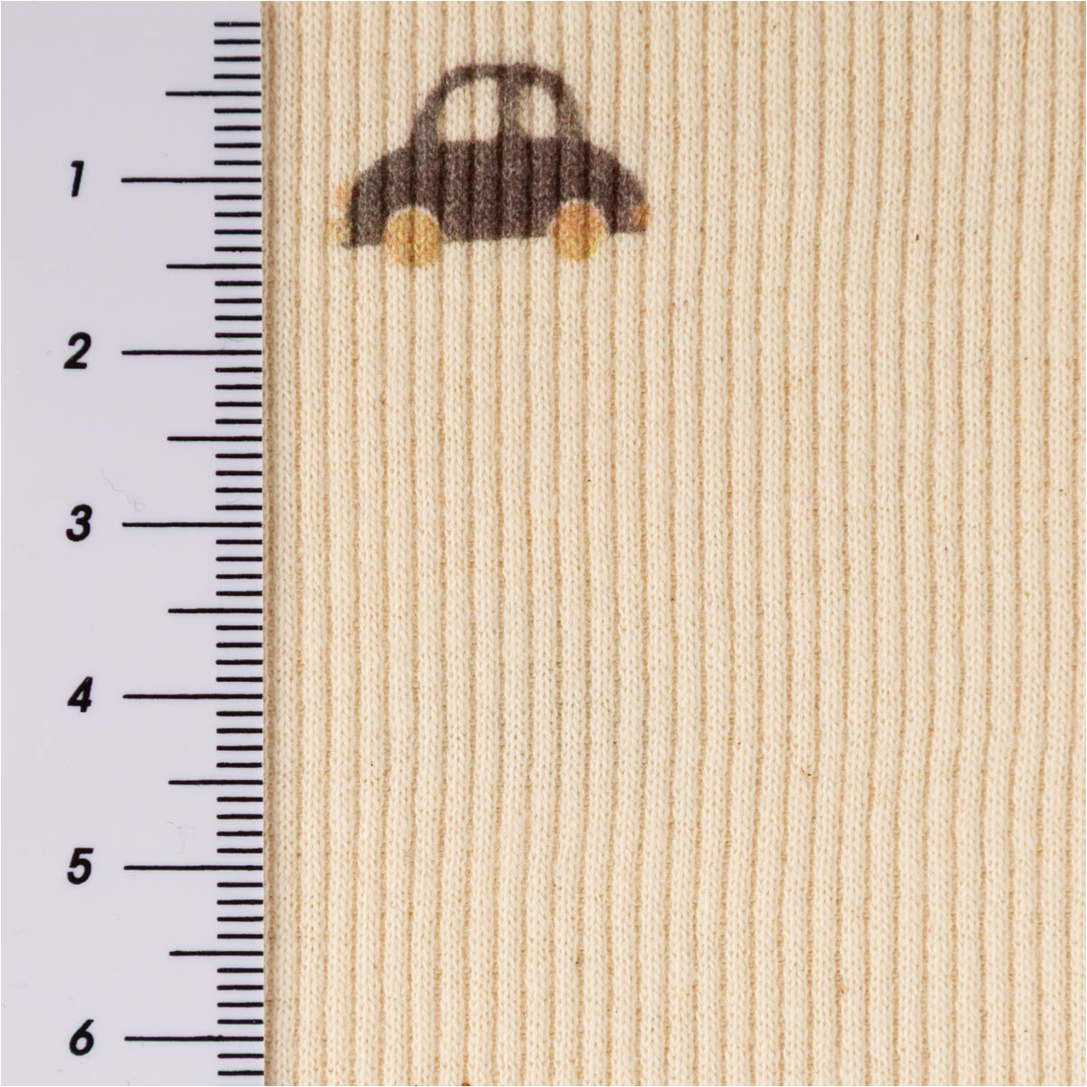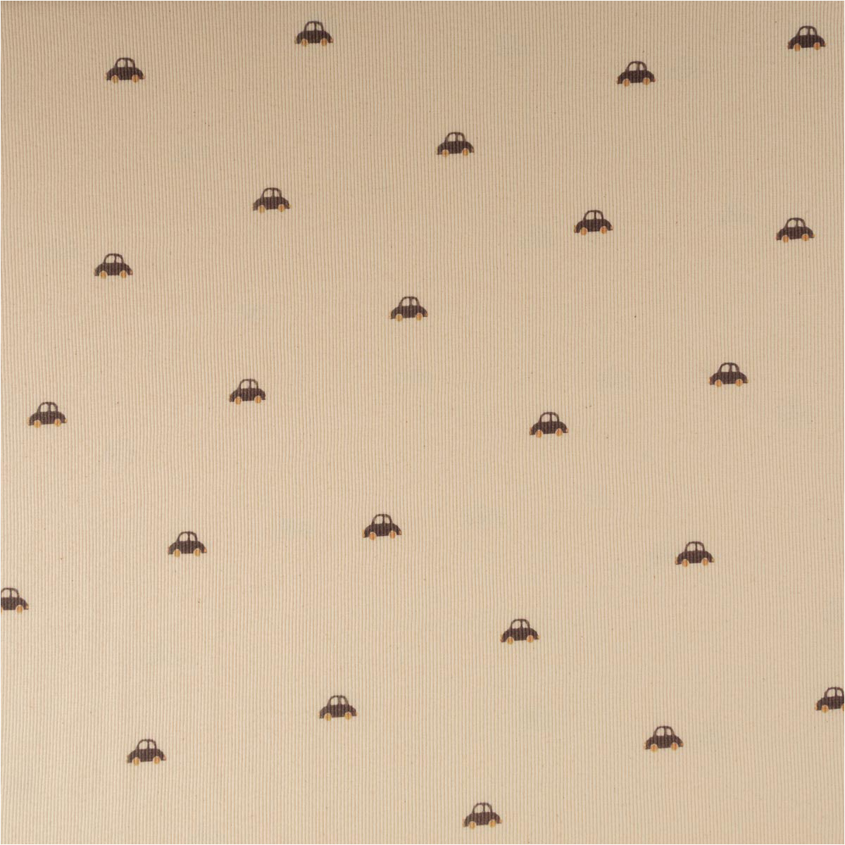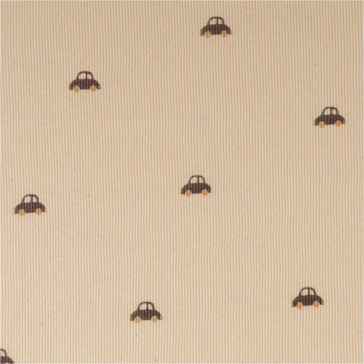 Rippjersey Rib Jersey Stoff aus Bio Baumwolle mit kleinen Autos in Natur – Weicher Jersey für bequeme Mode & Accessoires