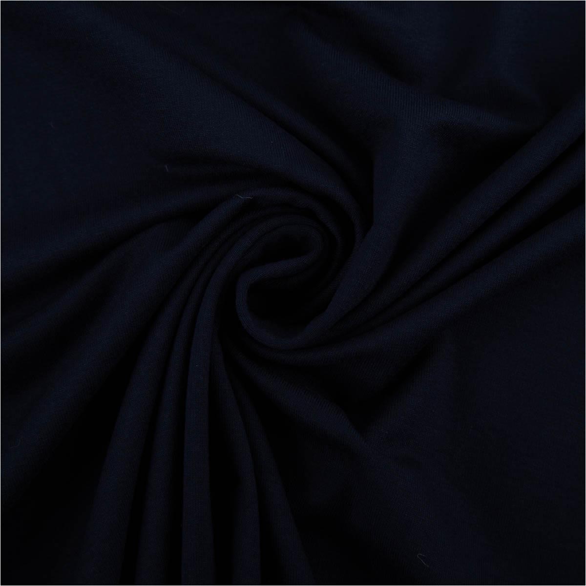 Dieser hochwertige Viskose Jersey Stoff in Dunkelblau begeistert durch seinen weichen, fließenden Fall und seine Elastizität. Mit einem Anteil von 95 % Viskose und 5 % Elasthan bietet er dir höchsten Tragekomfort und optimale Bewegungsfreiheit – perfekt für Kleidung, die du am liebsten jeden Tag tragen möchtest.
