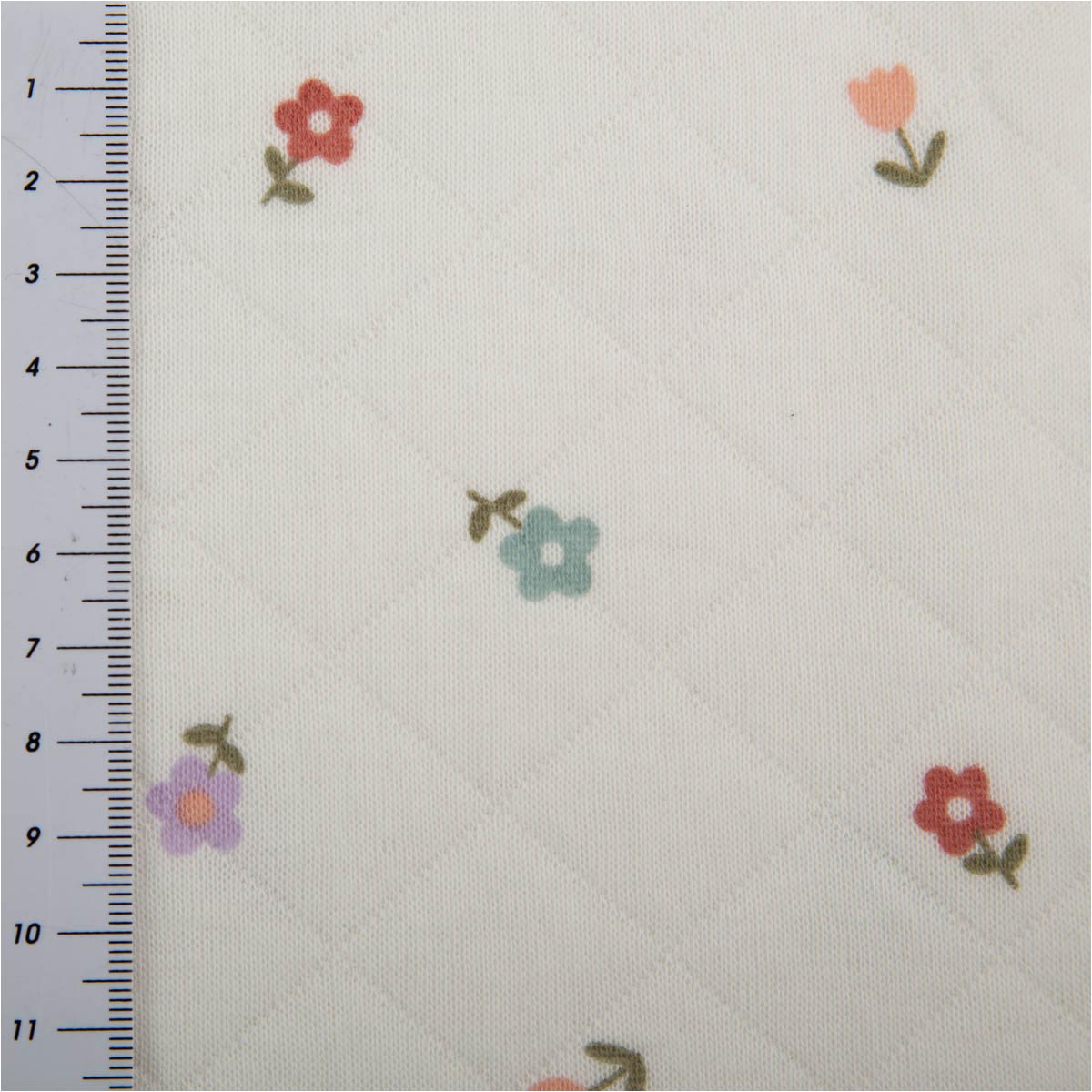 Stoff mit Rautenstruktur und leichter Wattierung Blümchen wollweiß bunt 1,40m Breite