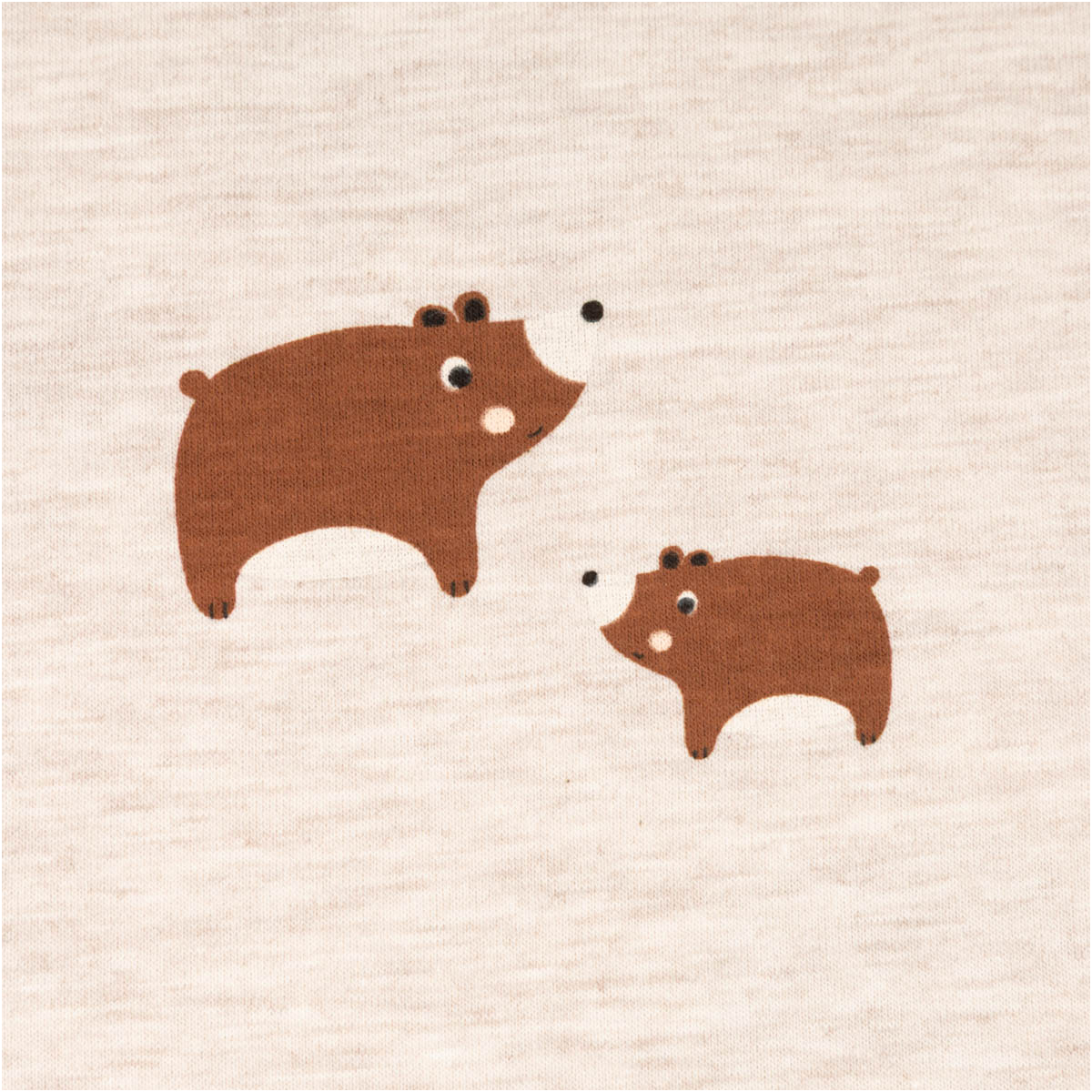 Die kleinen Bärenmotive sorgen für einen süßen und gleichzeitig ruhigen Look. Die Kombination aus meliertem Sandton und warmem Braun wirkt natürlich und lässt sich vielseitig kombinieren. So entstehen zeitlose Kleidungsstücke, die lange Freude machen.