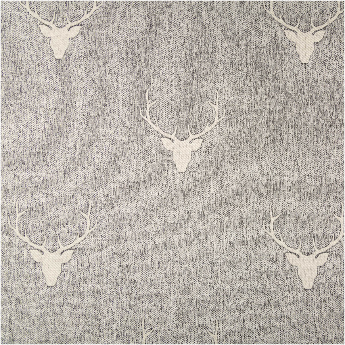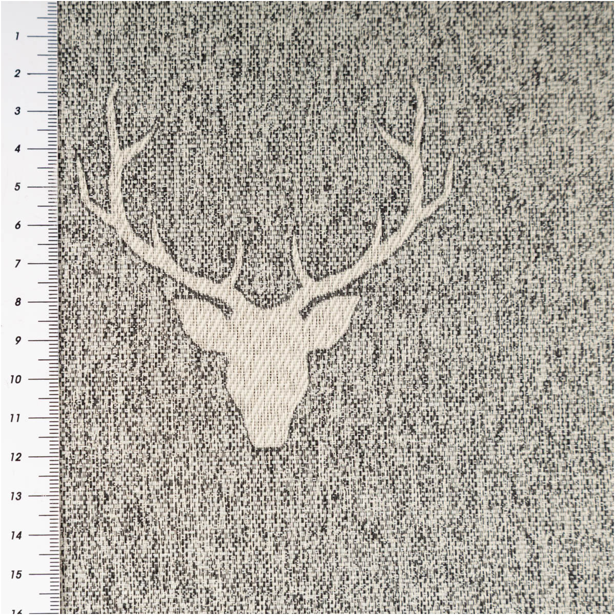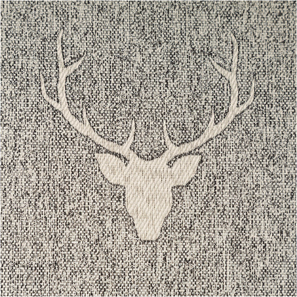 Jacquard-Dekostoff „Hirschkopf mit Geweih“ grau-beige meliert – Wendestoff made in Germany