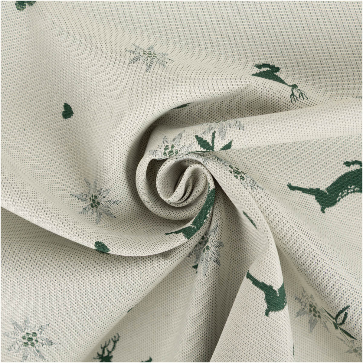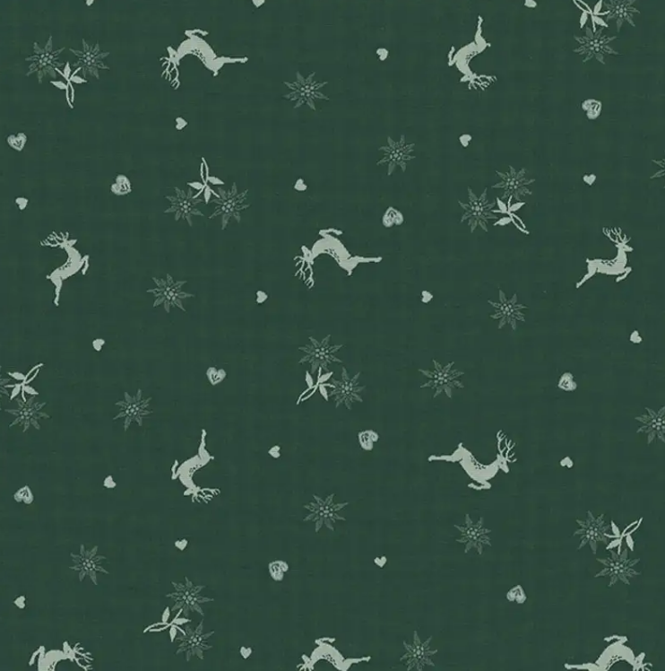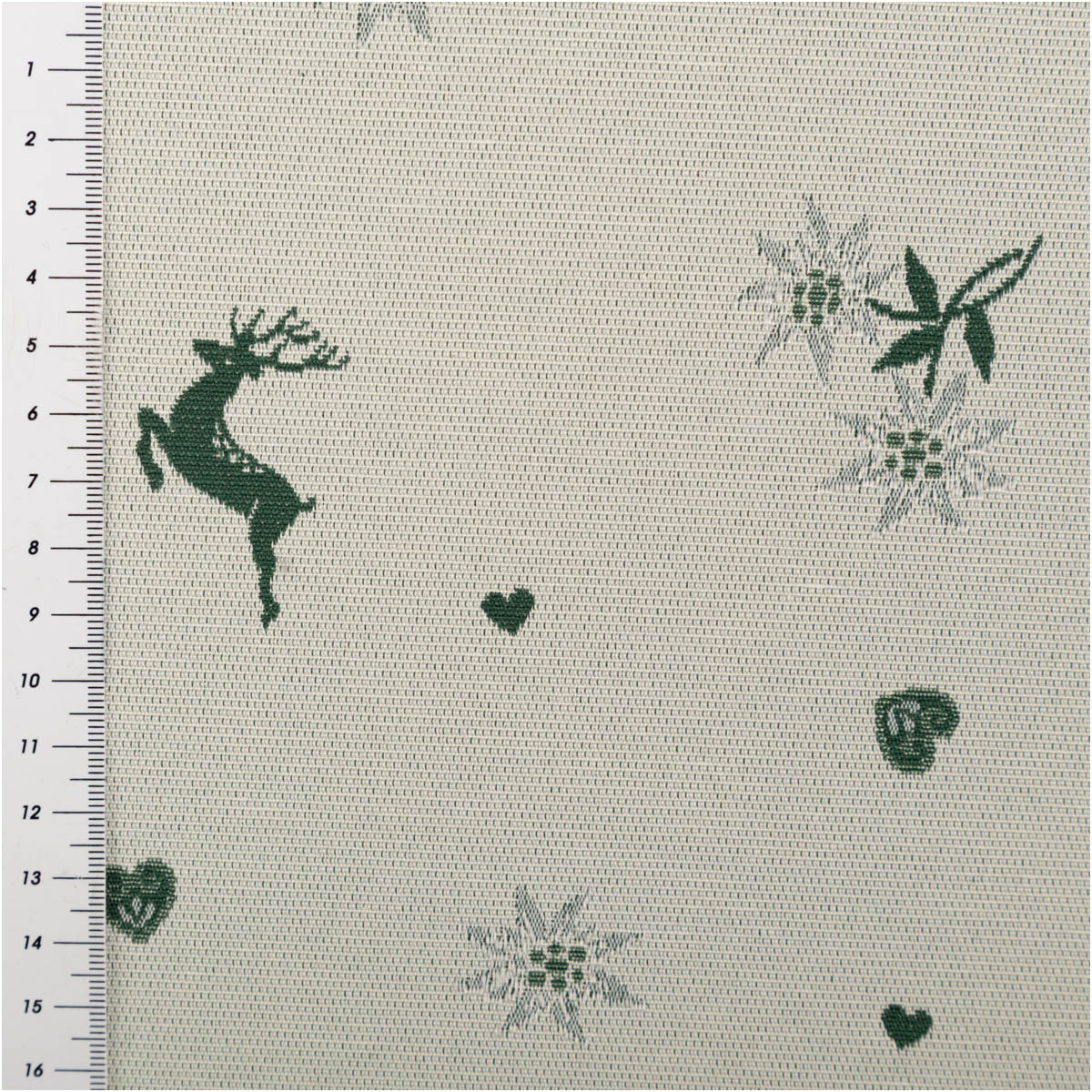 Jacquard Stoff Dekostoff Hirsch Edelweiß Herz Doubleface grün ecru 1,4m Breite