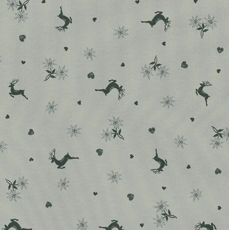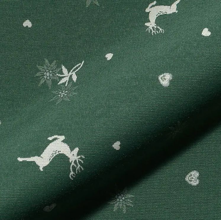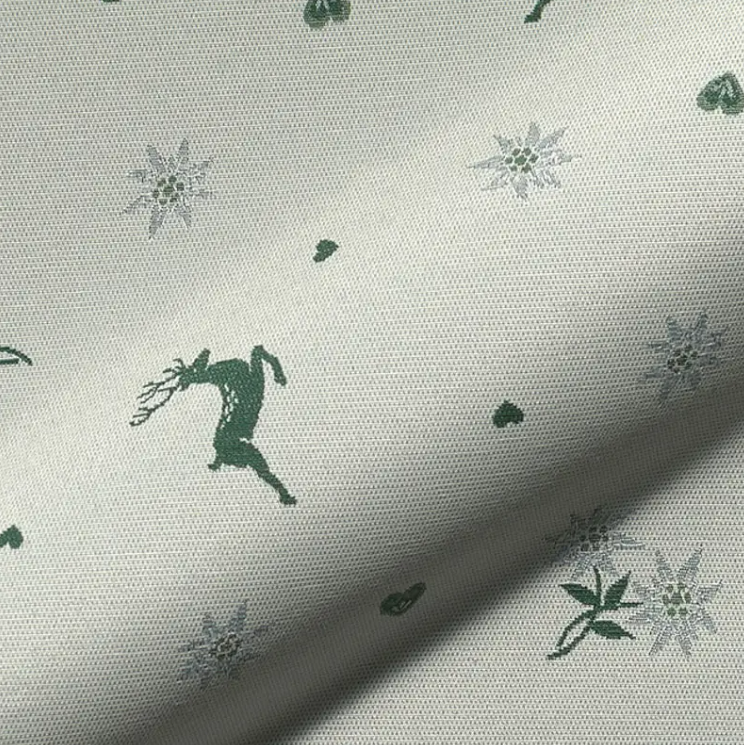 Wenn du Landhausstil liebst und einen Stoff suchst, der sofort nach Chalet und Gemütlichkeit aussieht, ist dieser Jacquard Dekostoff Doubleface genau dein Ding. Das Design kombiniert Hirsche, Edelweißblüten und kleine Herzen – klassisch, verspielt und trotzdem stilvoll. Das Muster ist eingewebt, nicht gedruckt, dadurch wirkt der Stoff besonders hochwertig und ist beidseitig verwendbar: einmal grün und einmal ecru, jeweils mit invertiertem Motiv. Perfekt für Wohntextilien, die du sehen und fühlen willst.