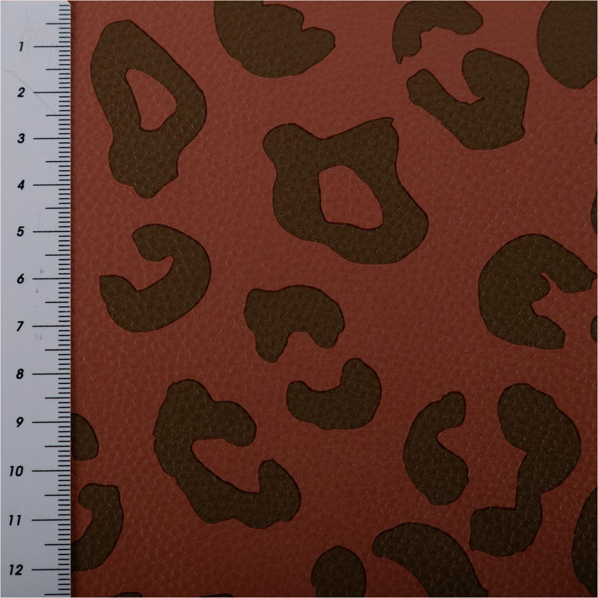 Hochwertiges Kunstleder mit Happy-Leo-Print in Braun/Oliv von Cherry Picking Studios in Kooperation mit Swafing