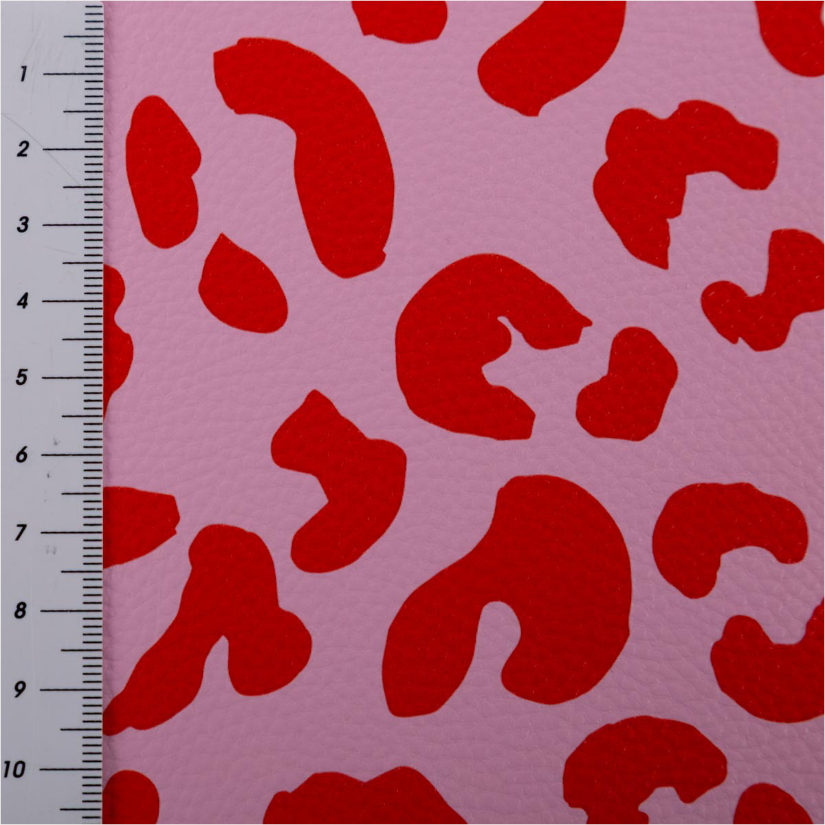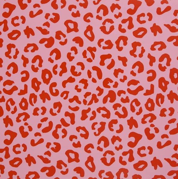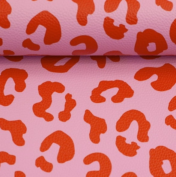Hochwertiges Kunstleder mit Happy-Leo-Print in Rosa/Rot von Cherry Picking Studios in Kooperation mit Swafing