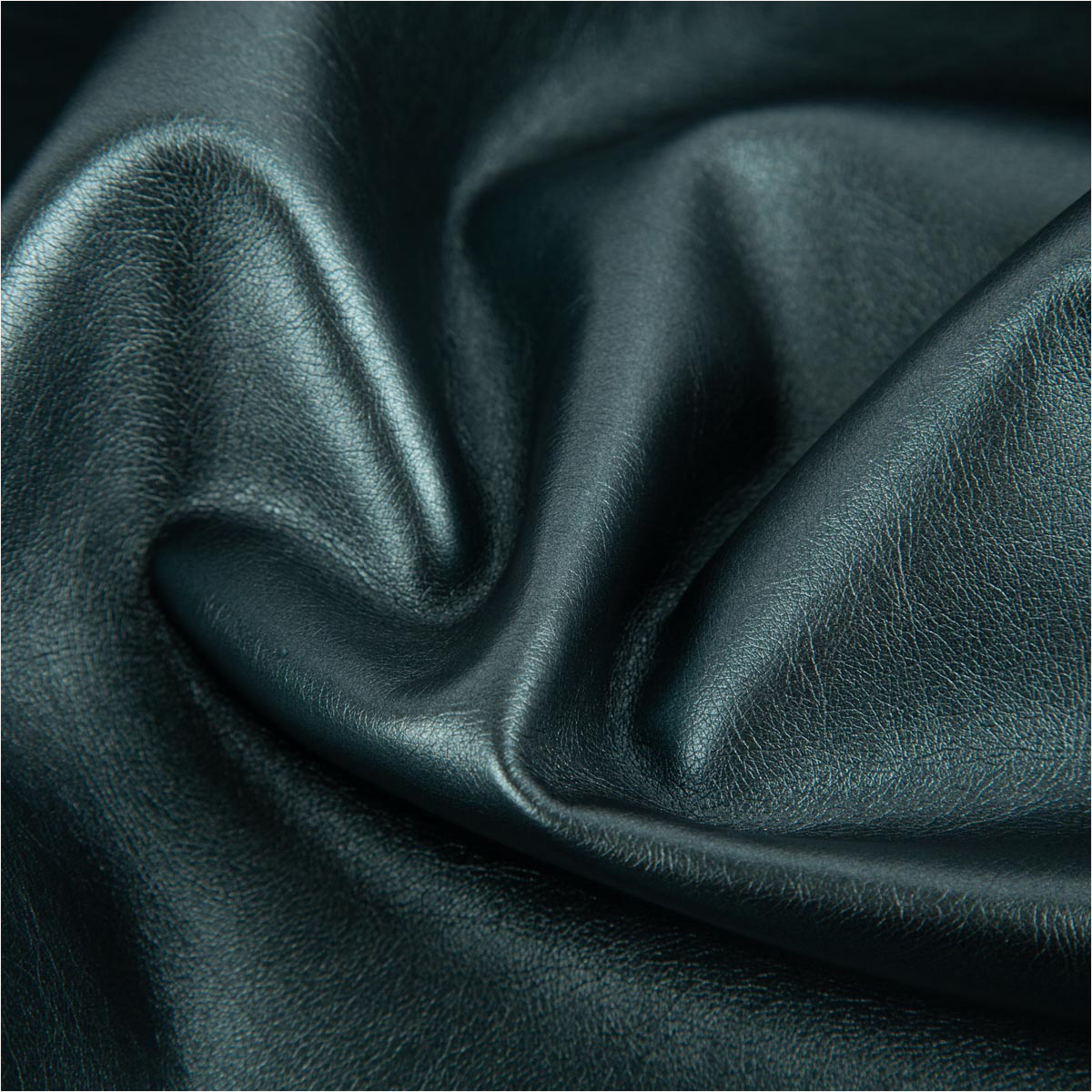 Weiches Kunstleder mit metallic schimmernder Oberfläche in elegantem Meergrün Metallic