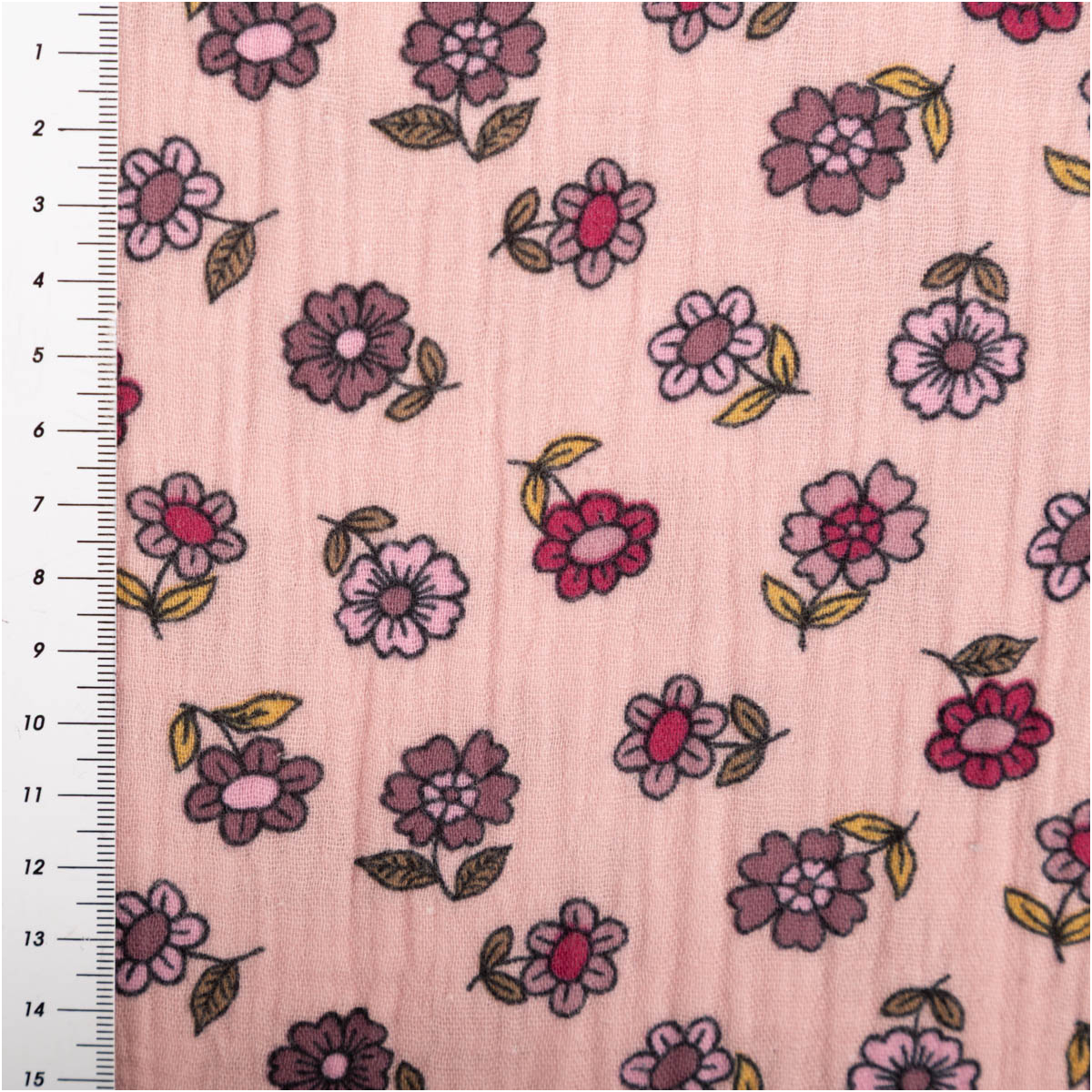 Musselin Stoff Baumwolle Blümchen rosa 1,30m Breite