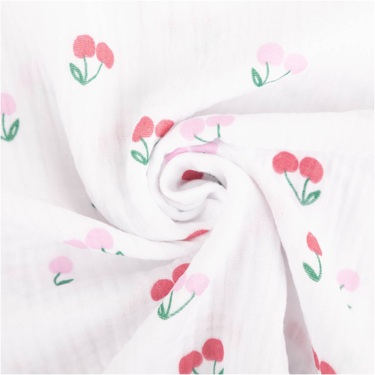 Das süße Kirschmotiv macht diesen Baumwollstoff zu einer schönen Wahl für viele Nähprojekte. Du kannst daraus Kleider, Tuniken, Röcke, Blusen oder luftige Oberteile nähen. Auch für Baby- und Kinderkleidung ist dieser Musselin ideal. Darüber hinaus eignet er sich für Halstücher, Spucktücher, Mulltücher, leichte Decken, Kissenhüllen oder andere Accessoires.