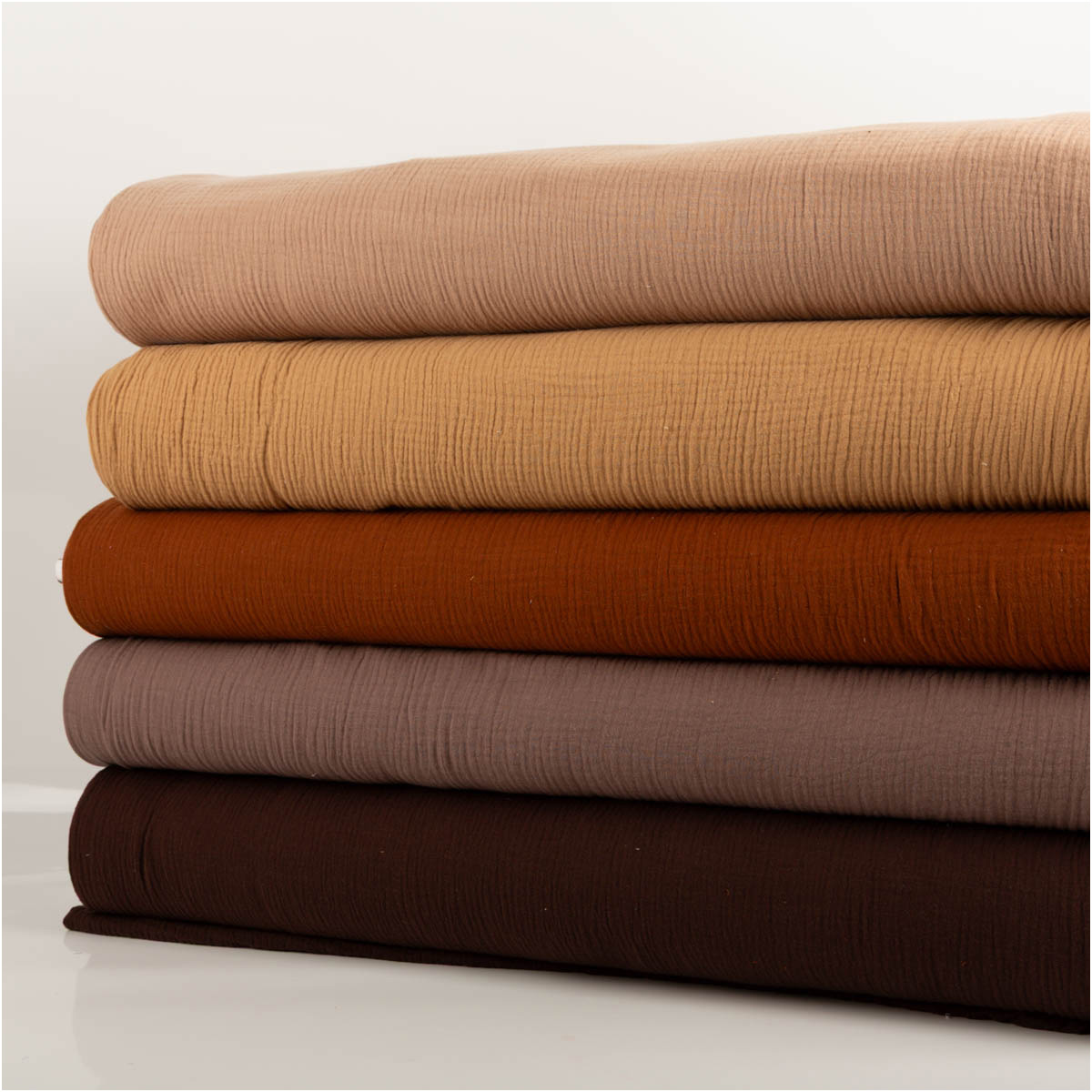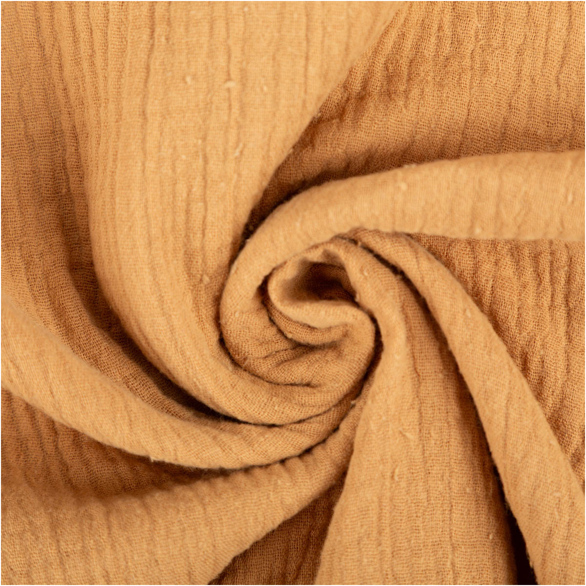 Entdecke die Vielseitigkeit von Musselin Stoff Double Gauze uni Kamel-Braun und nähe wunderschöne, luftige Kreationen für dich, dein Baby oder dein Zuhause! Hier unser gesamtes Musselin-Sortiment entdecken.