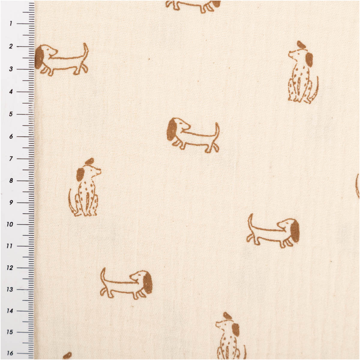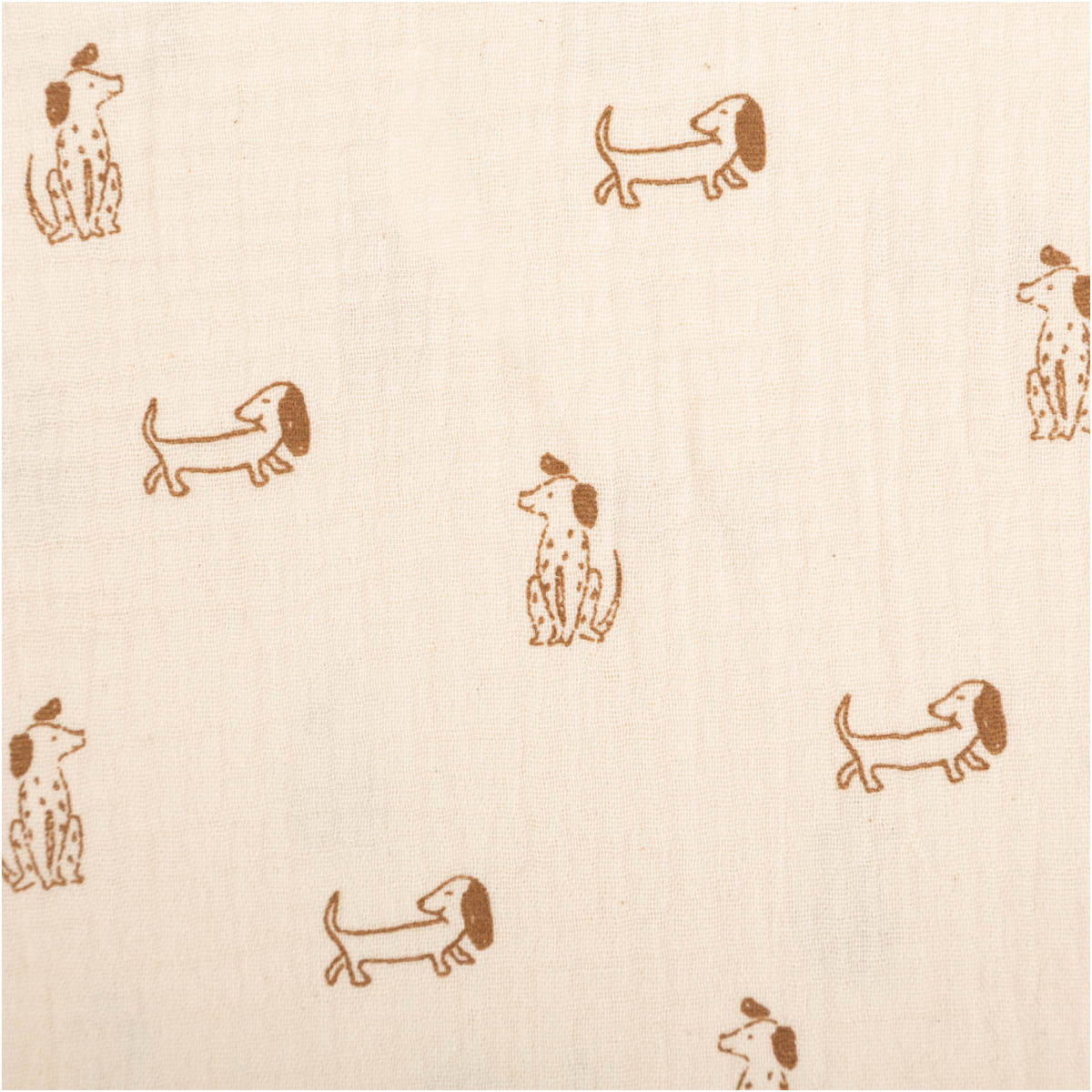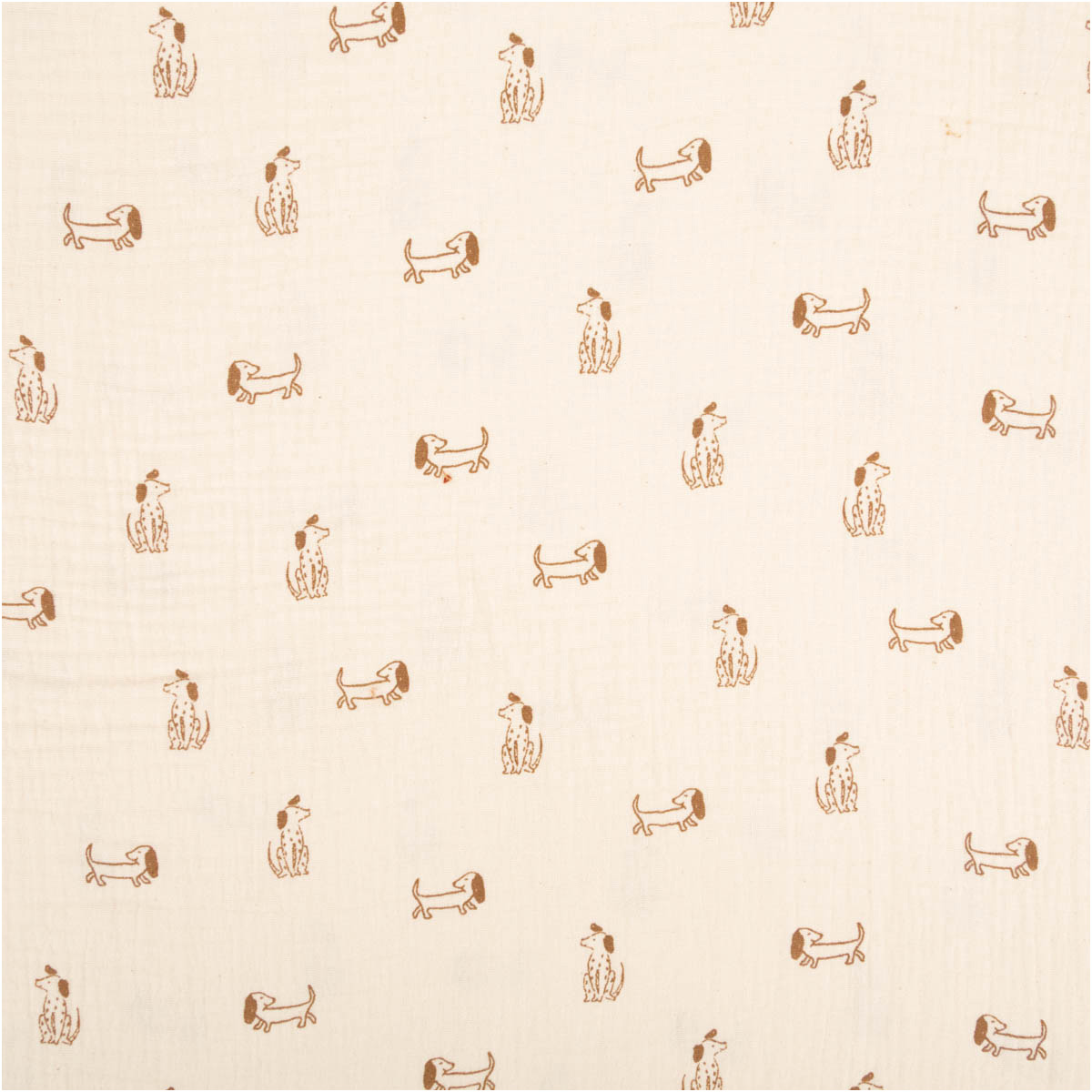 Musselin Stoff Bio-Baumwolle Hund – natur mit hellbraunen Hunden, weich & natürlich