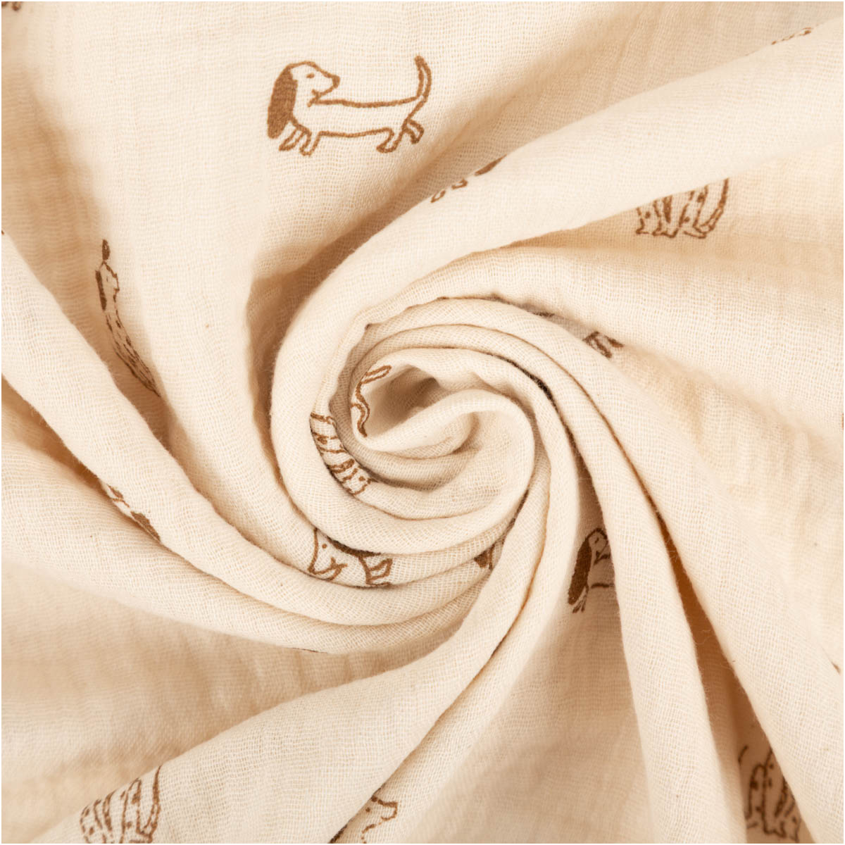 Musselin Stoff Bio Baumwollstoff Hund natur, hellbraun 1,30 m Breite