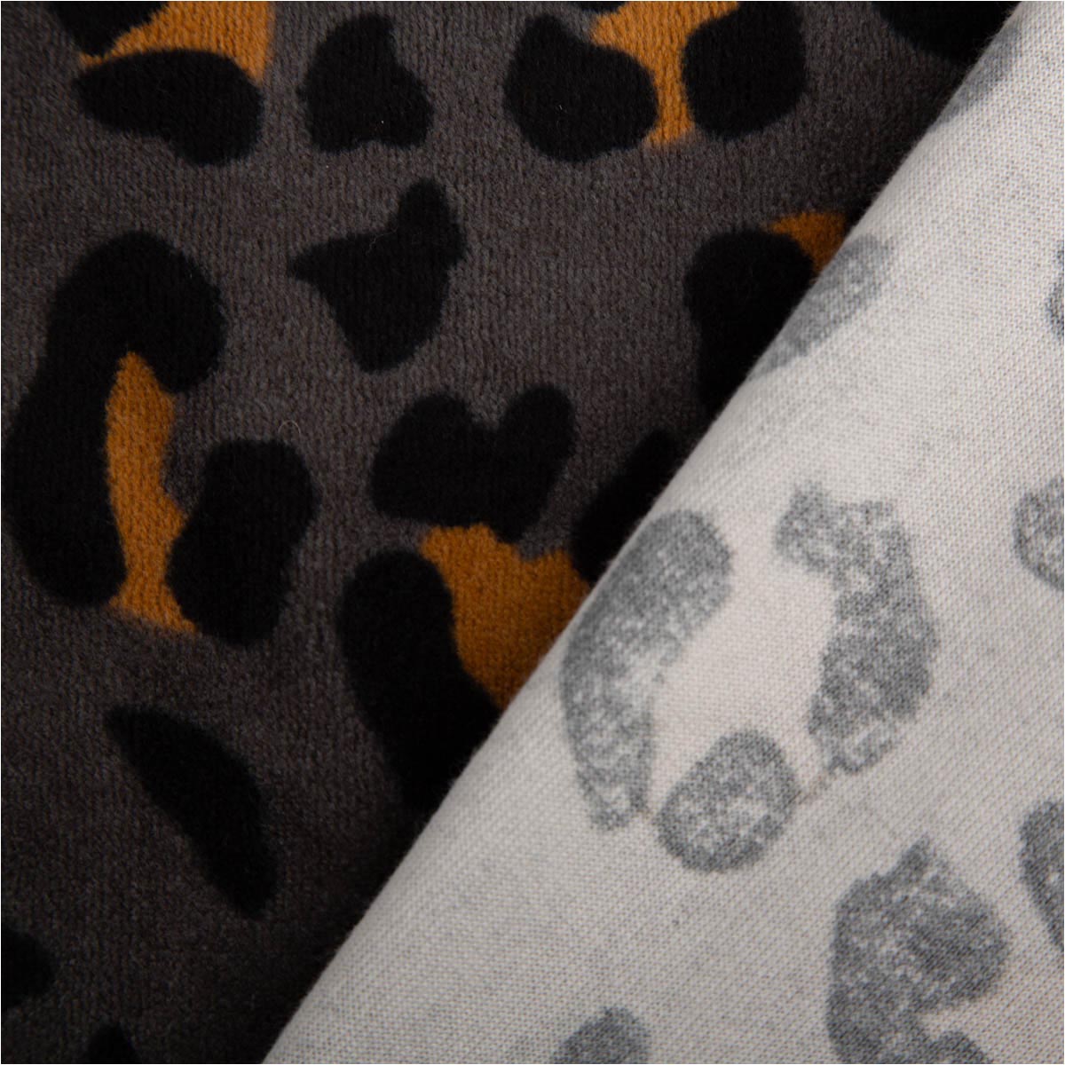Nicki Stoff Velours Baumwolle Leo grau schwarz braun 1,50 m Breite