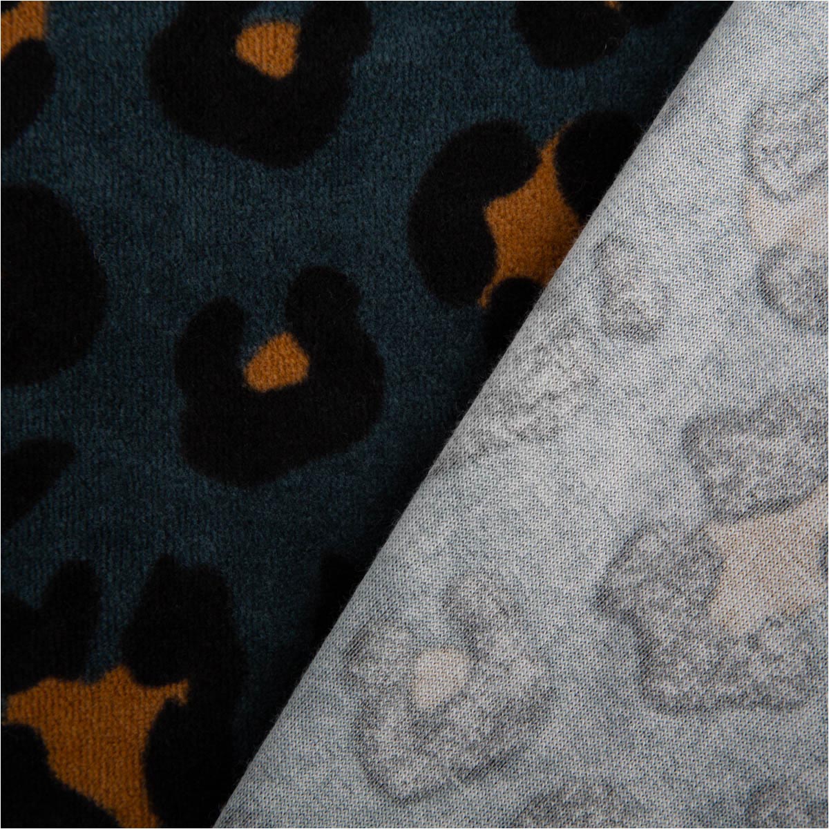 Dieser Nicki Stoff mit Velours-Oberfläche fühlt sich herrlich samtig an und ist dank leichtem Stretch superbequem. Das Leo-Dessin in Petrol macht aus jedem Projekt einen besonderen Hingucker – perfekt für gemütliche Lieblingsstücke für Groß und Klein.