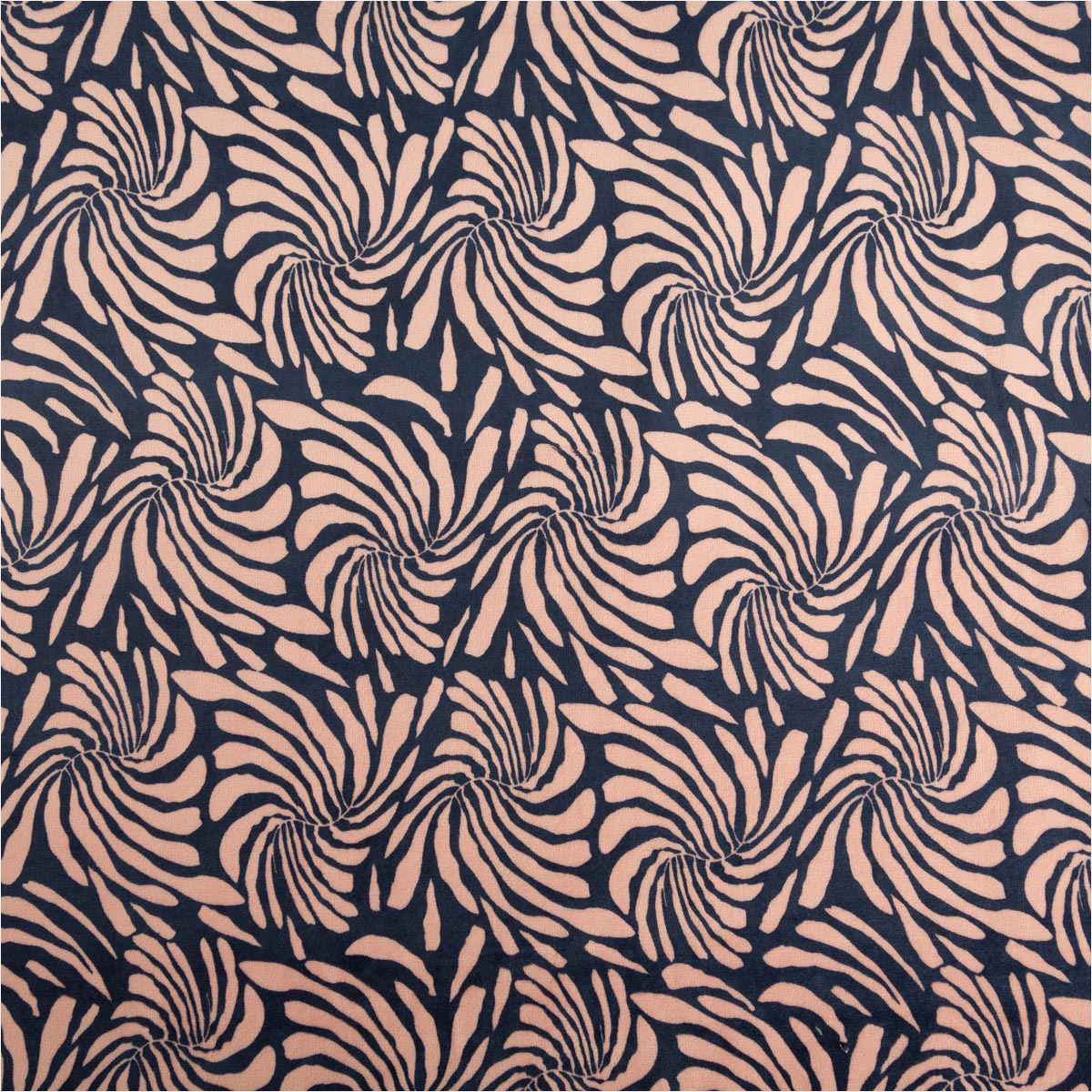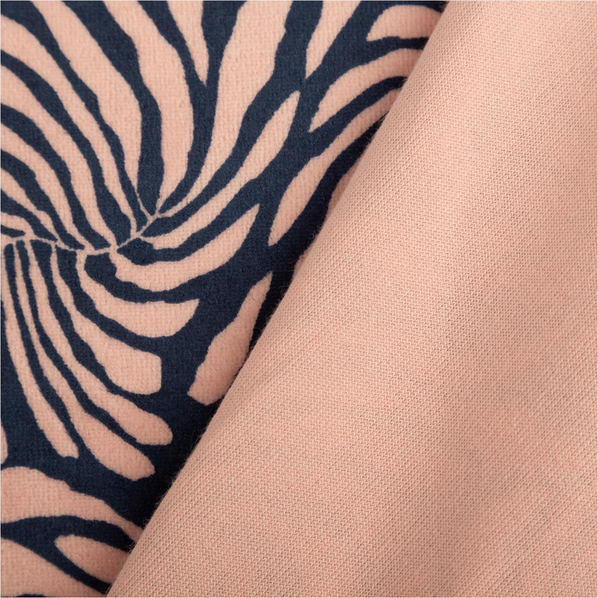 Dieser traumhaft weiche Nicki Stoff aus Baumwolle mit Velours-Oberfläche bringt Wärme, Gemütlichkeit und einen modernen Look in jedes Nähprojekt. Das abstrakte Blättermuster in Rosa und Dunkelblau sorgt für einen stilvollen Akzent, während der hohe Baumwollanteil den Stoff atmungsaktiv, hautfreundlich und pflegeleicht macht.