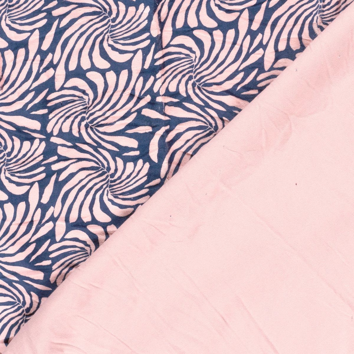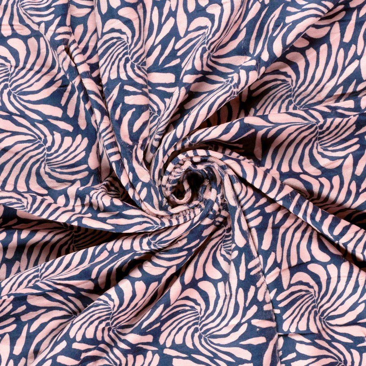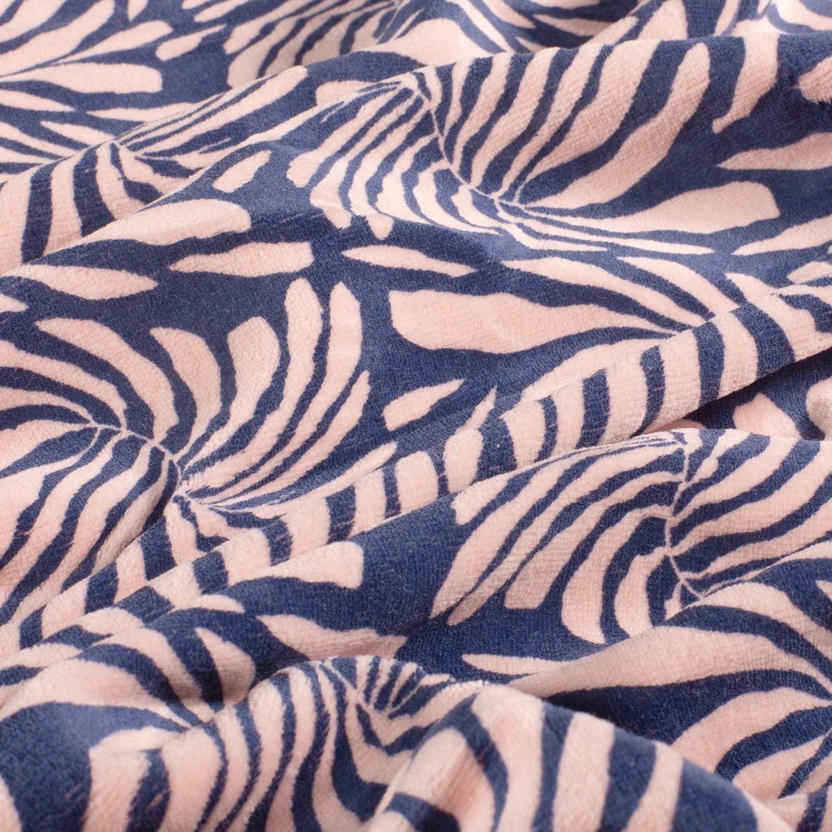 Nicki Stoff Velours Baumwolle rosa blau mit abstraktem Blätterdesign – weich, modern & vielseitig