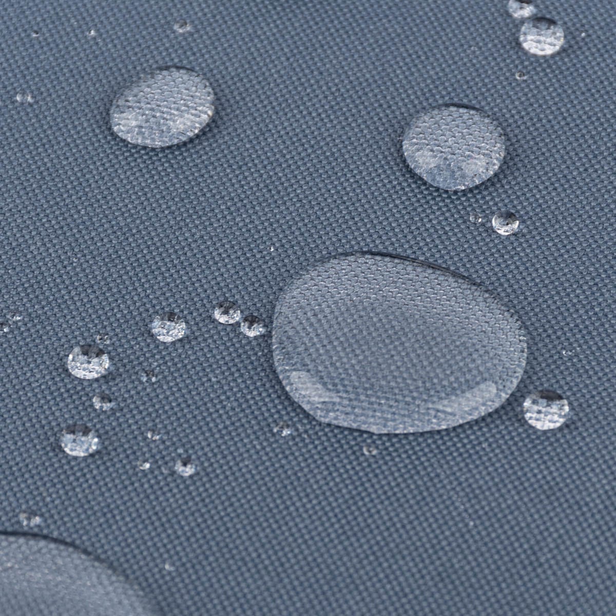 Die Rückseite des Stoffes ist mit einer wasserabweisenden Beschichtung versehen. Im Wassersäulen-Test erreicht der Stoff ca. 1.727 mm und ist damit regenfest, jedoch nicht vollständig wasserdicht bei starkem, dauerhaftem Druck. Ideal für den Einsatz im Außenbereich, bei dem Schutz vor Regen und Feuchtigkeit gefragt ist.