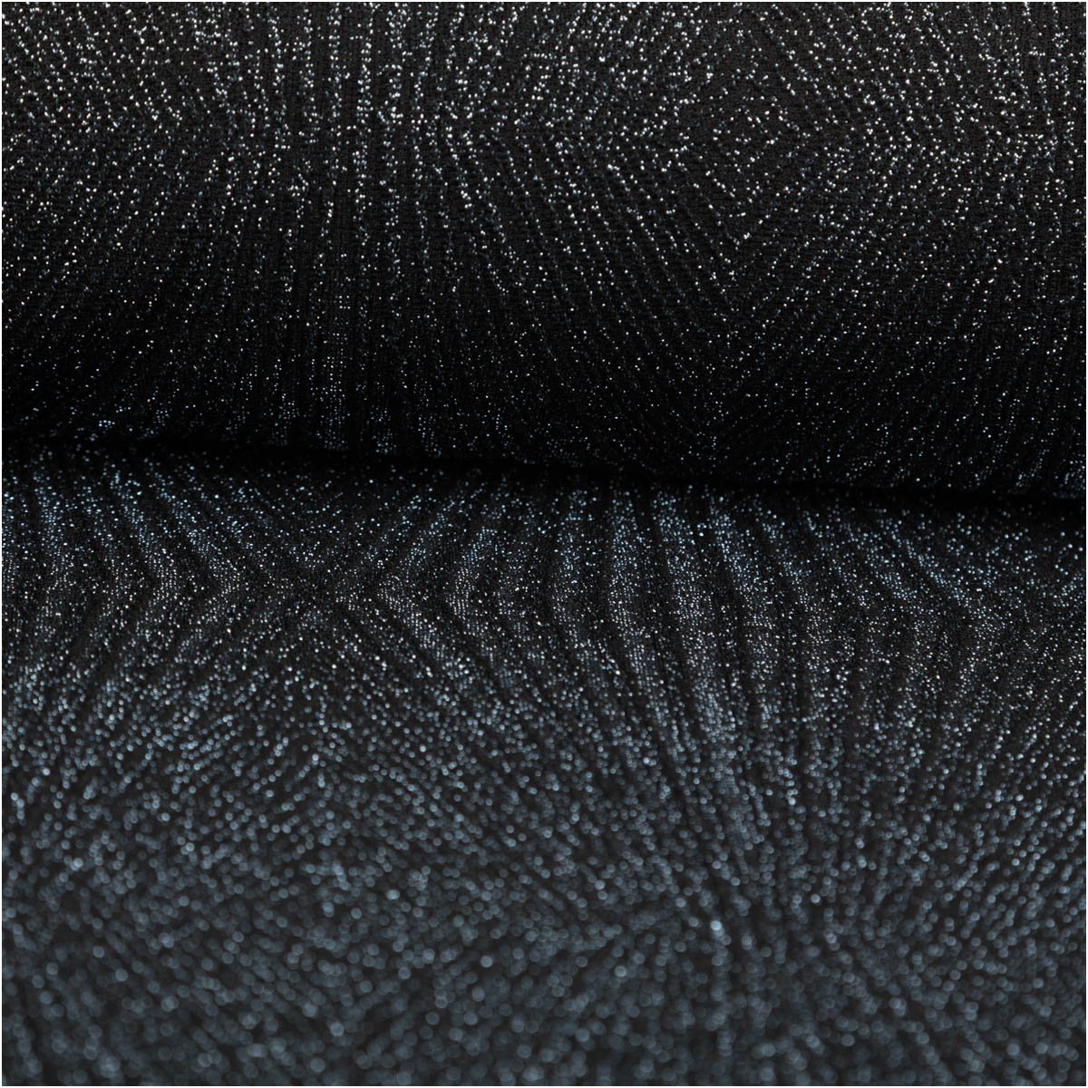 Edler Metallic-Jersey – schwarzer Grundton mit schimmerndem Silber und geometrischem Muster