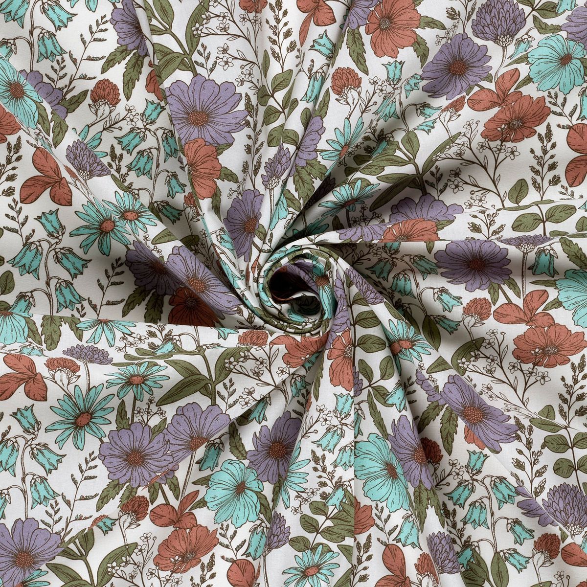 Dieser Baumwollstoff Popeline verbindet eine schöne florale Optik mit den praktischen Vorteilen einer hochwertigen Baumwollqualität. Der Stoff ist leicht, angenehm zu verarbeiten und vielseitig einsetzbar. Ob für Kleidung, Heimtextilien oder Accessoires – mit diesem Blumenstoff in Wollweiß, Lila, Türkis, Rot und Grün gelingen dir stilvolle Nähprojekte mit besonderem Charakter.