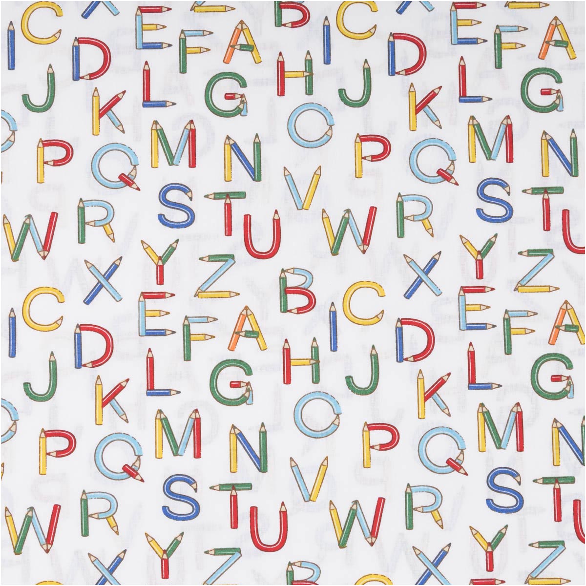 Baumwollstoff Popeline Stoff Buchstaben Buntstifte weiß 1,45m Breite