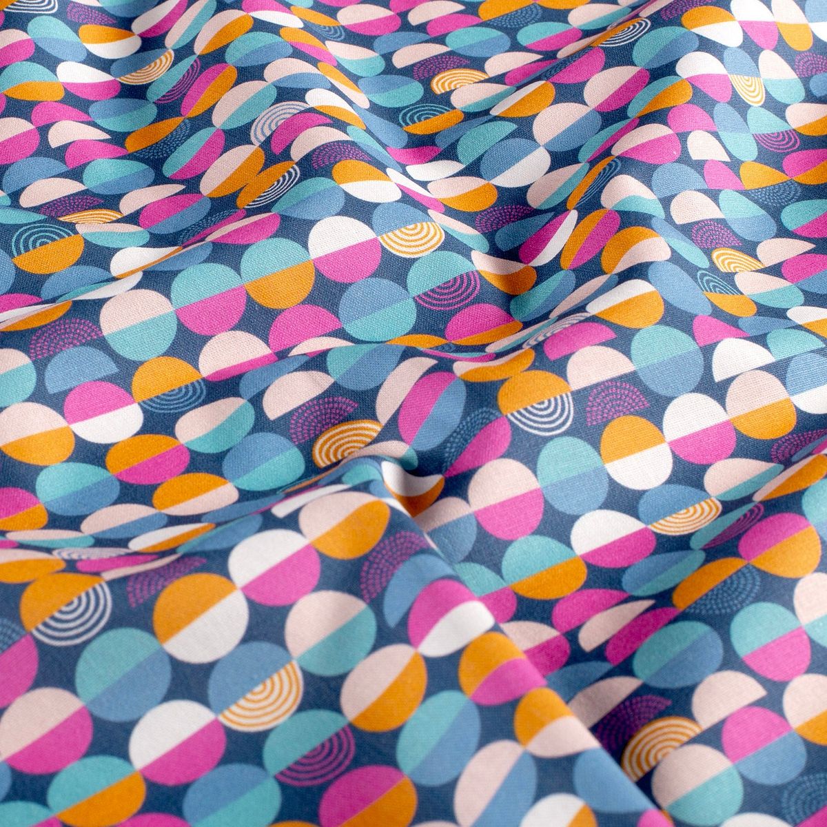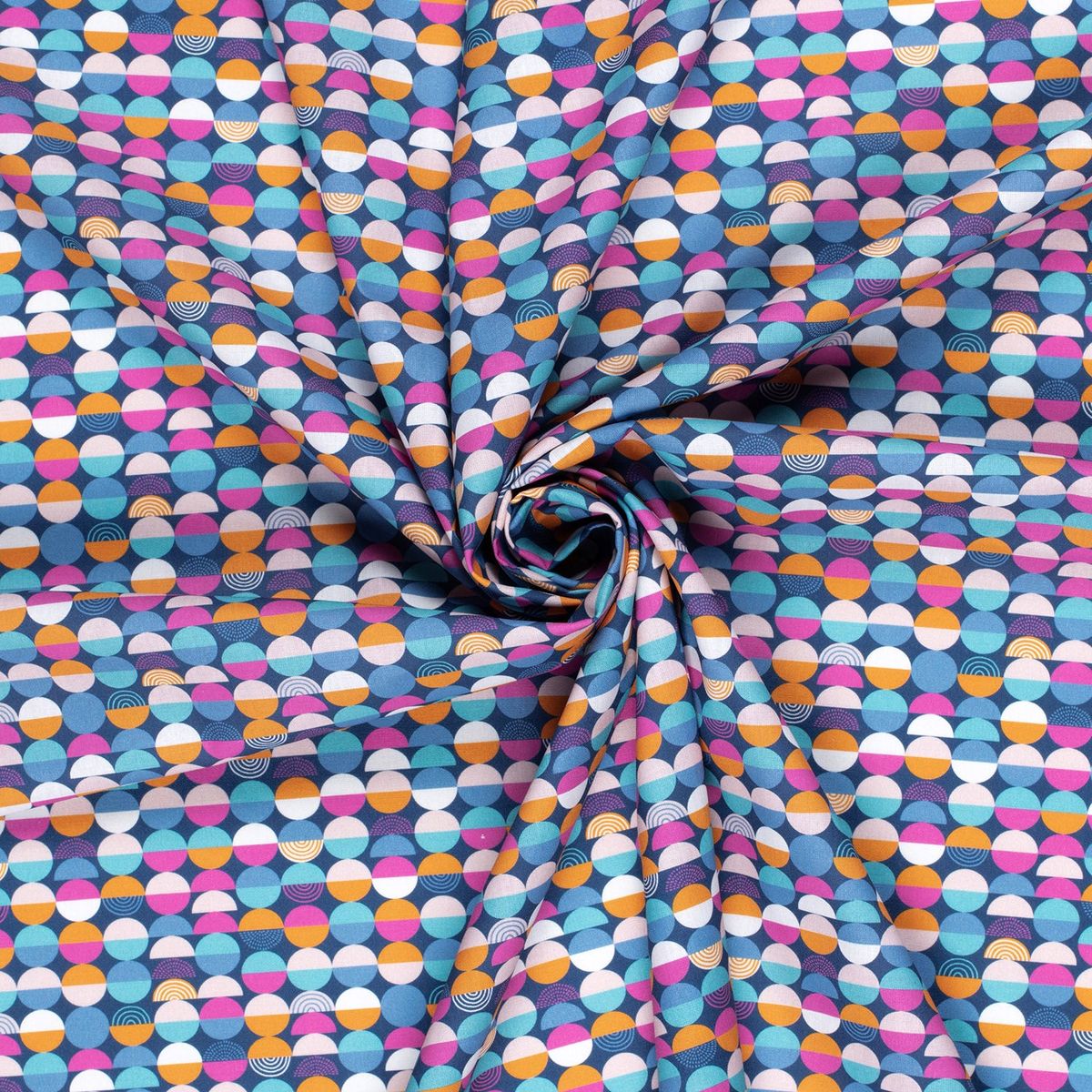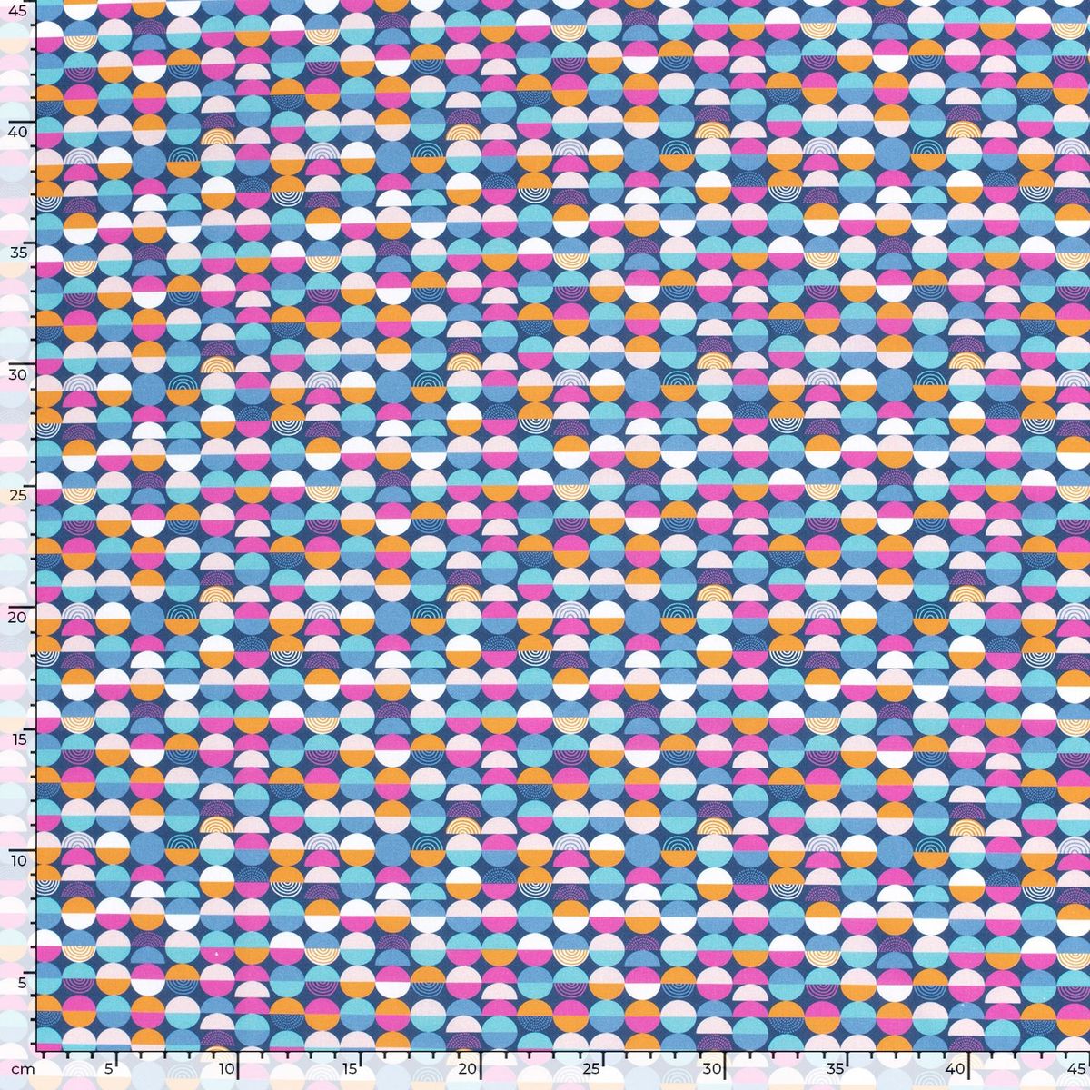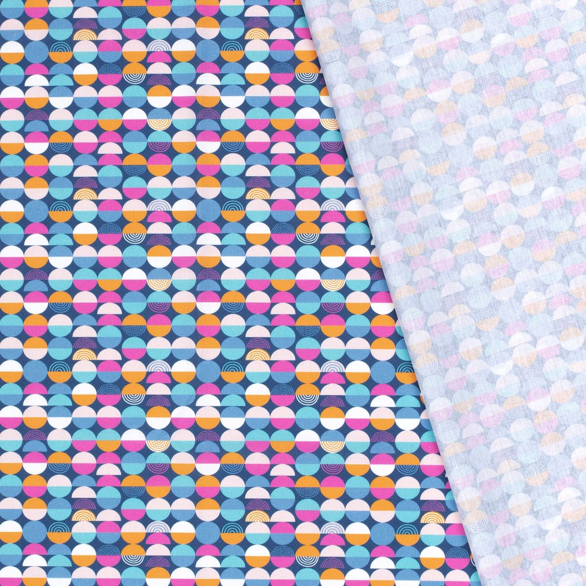 Trendiges Grafik-Muster: Baumwollstoff mit modernem Kreise-Dessin in Blau – perfekt für individuelle Nähprojekte.