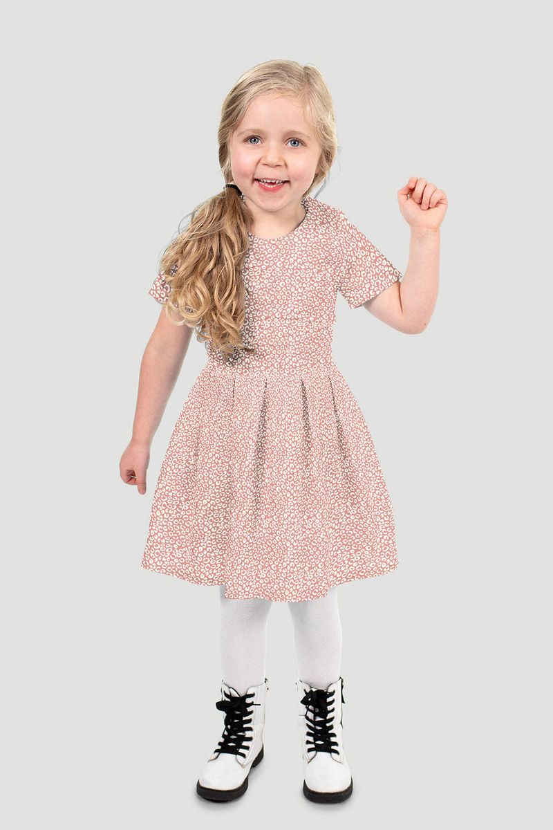 Das kleine Leo-Muster wirkt bei diesem Stoff besonders fein und alltagstauglich. Durch die zurückhaltende Farbgebung in Lachs und Hellcreme entsteht ein modischer Look, der nicht zu laut wirkt. Genau das macht den Stoff so vielseitig: Du kannst daraus sowohl verspielte Kinderkleidung als auch stilvolle Damenmode oder hübsche Wohnaccessoires nähen.