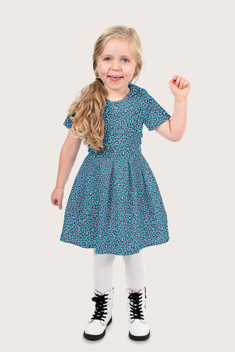 Das auffällige Leo-Dessin bekommt durch den türkisfarbenen Grund und die pinken Akzente einen frischen, modernen Look. Die schwarzen Konturen sorgen für einen starken Kontrast und machen den Stoff zu einem echten Hingucker. So entstehen Nähprojekte mit modischem Charakter, die modern, verspielt und selbstbewusst wirken.